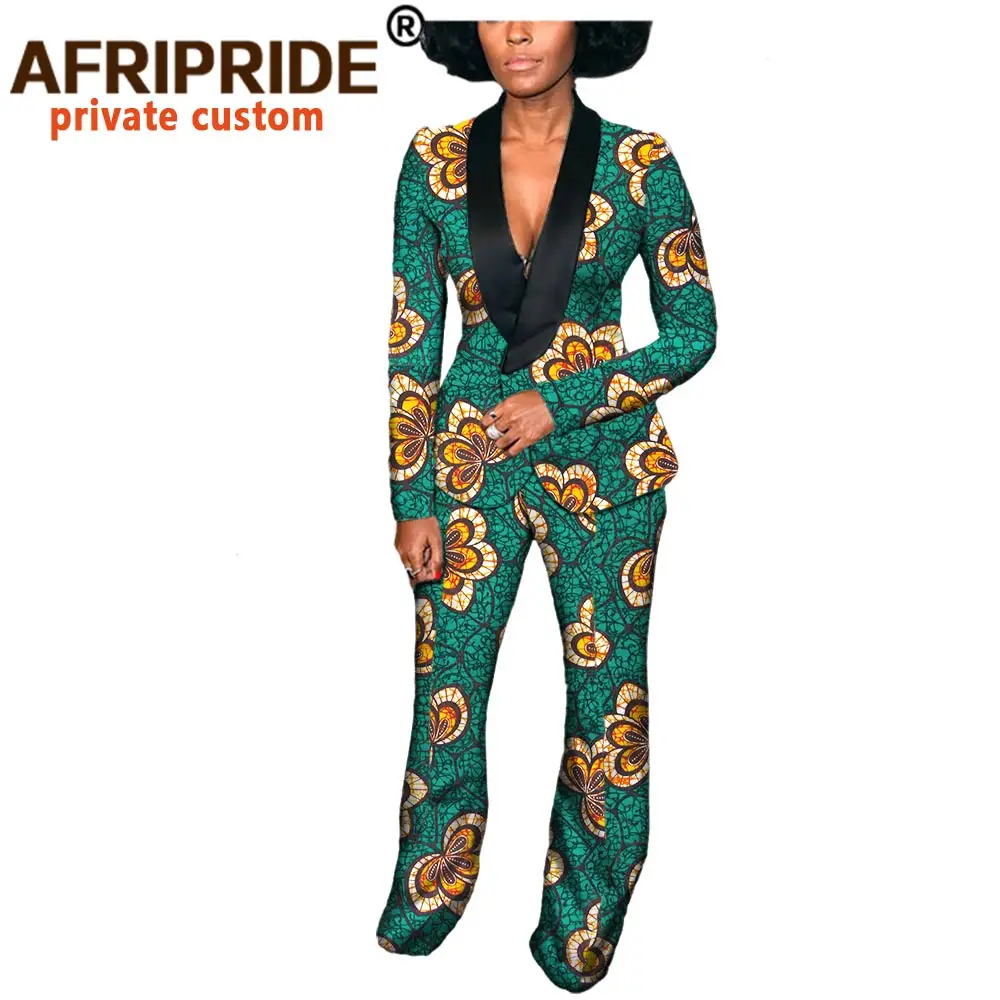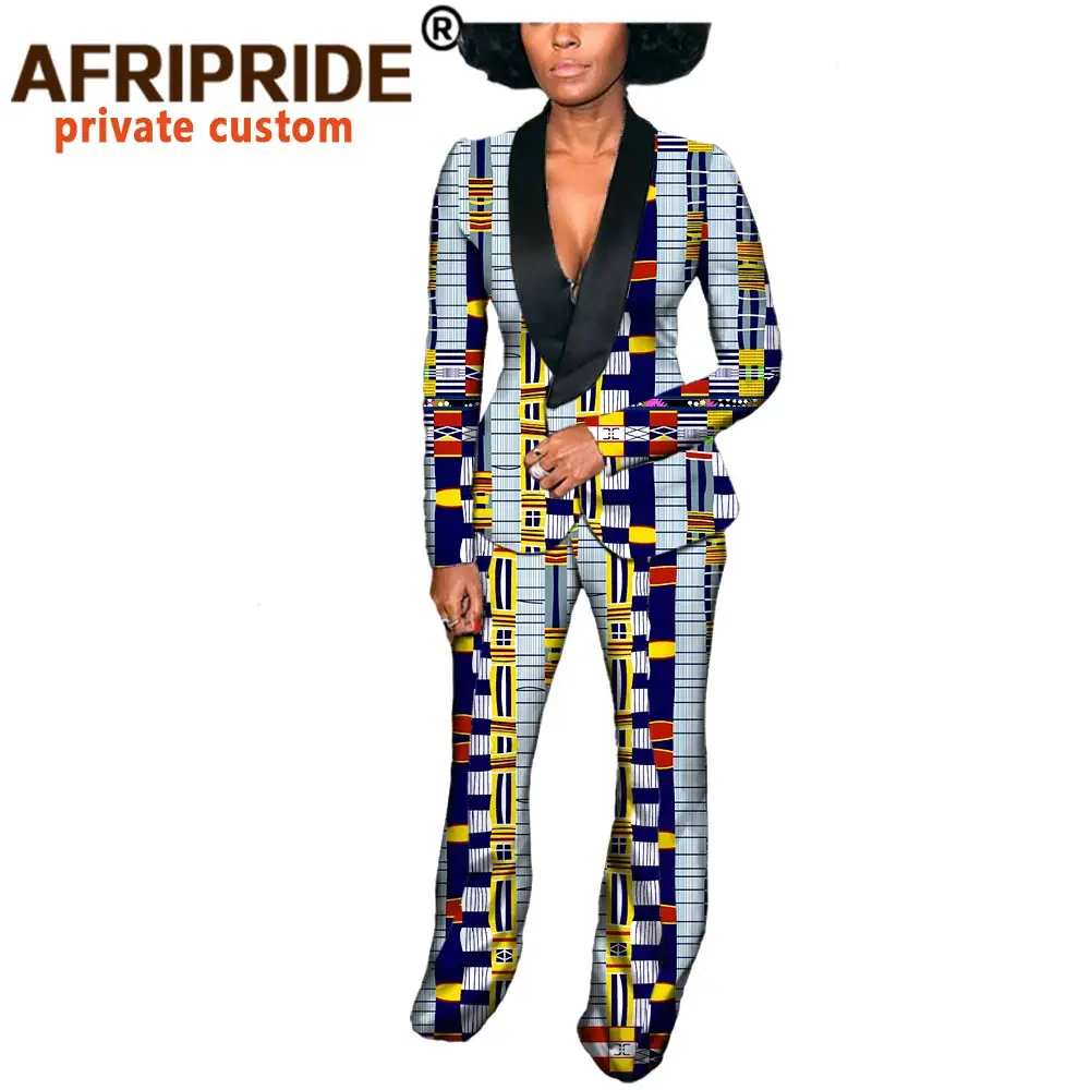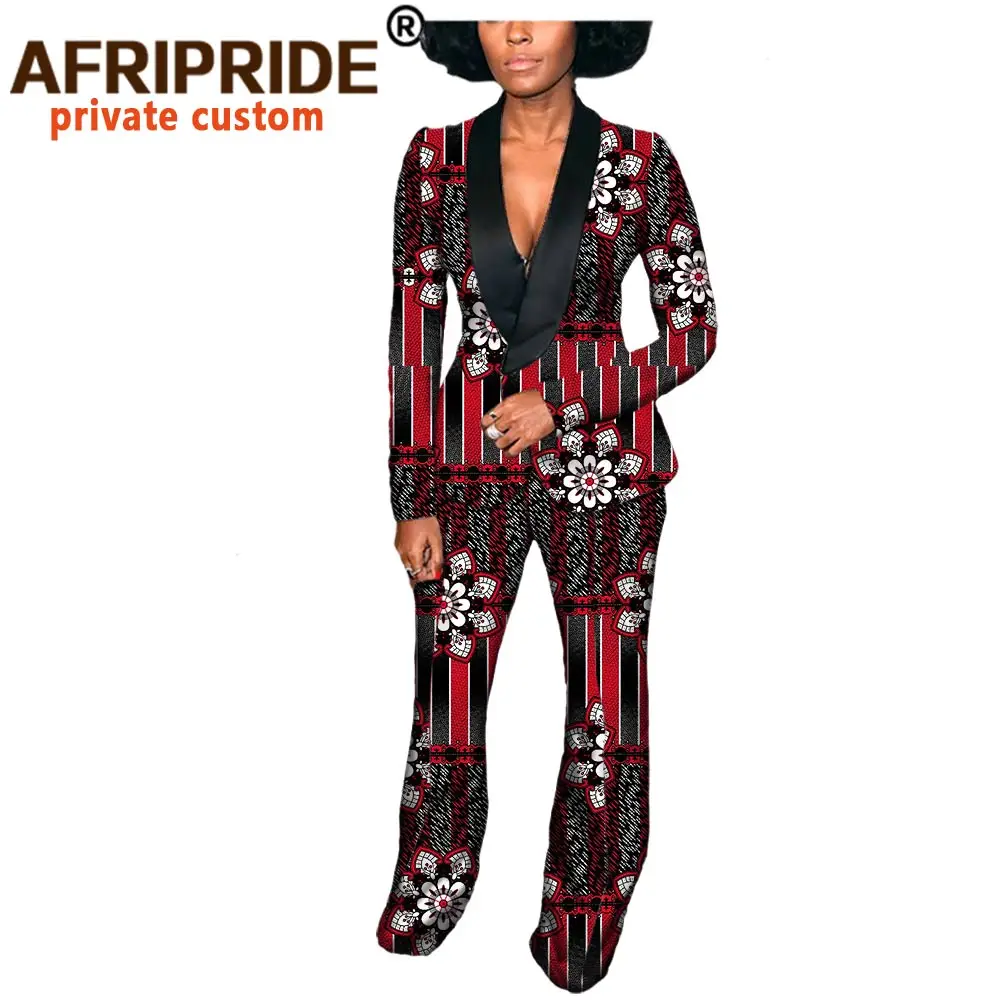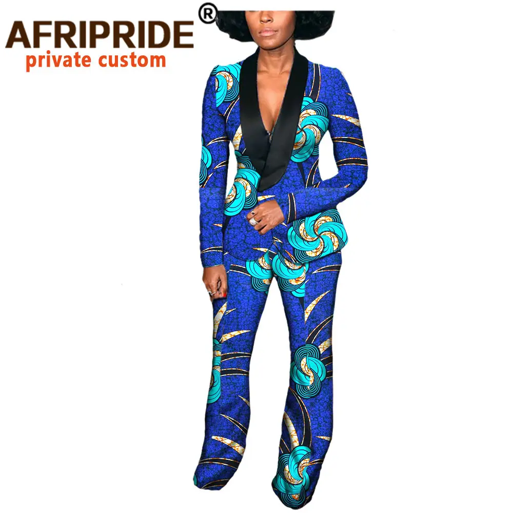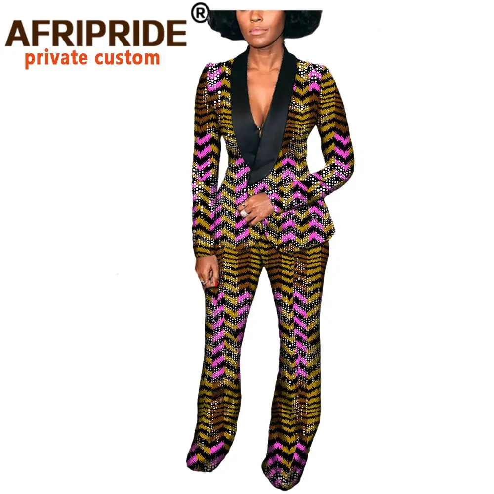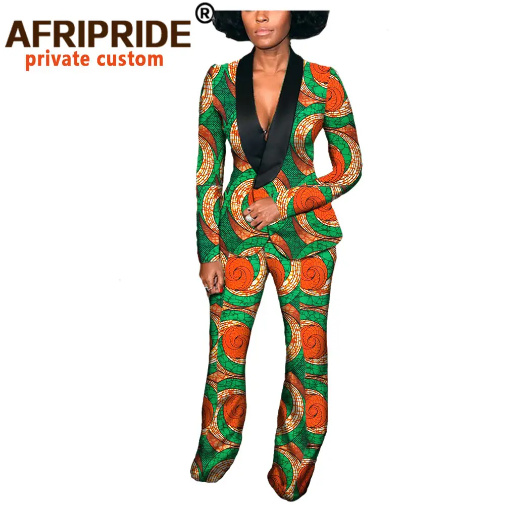 Осень 2020, Африканский женский костюм AFRIPRIDE private custom, Топ с длинным рукавом и V-образным вырезом + длинные брюки, 100% чистый вощеный хлопок, модель A722637