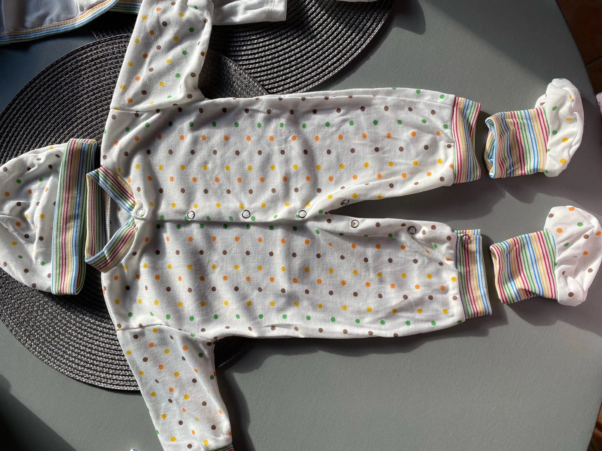 I Love This Store. Он всегда делает поставки очень быстро. Этот за 9 дней был у меня дома. Одежда по отношению к качеству и цене, это хорошая покупка. Они легкие, несколько тонкие, но хорошо сшиты и имеют металлические кронштейны. Все одежды имеют размер новорожденного, 1 или 2 месяца максимум, в возрасте. Я рекомендую это.