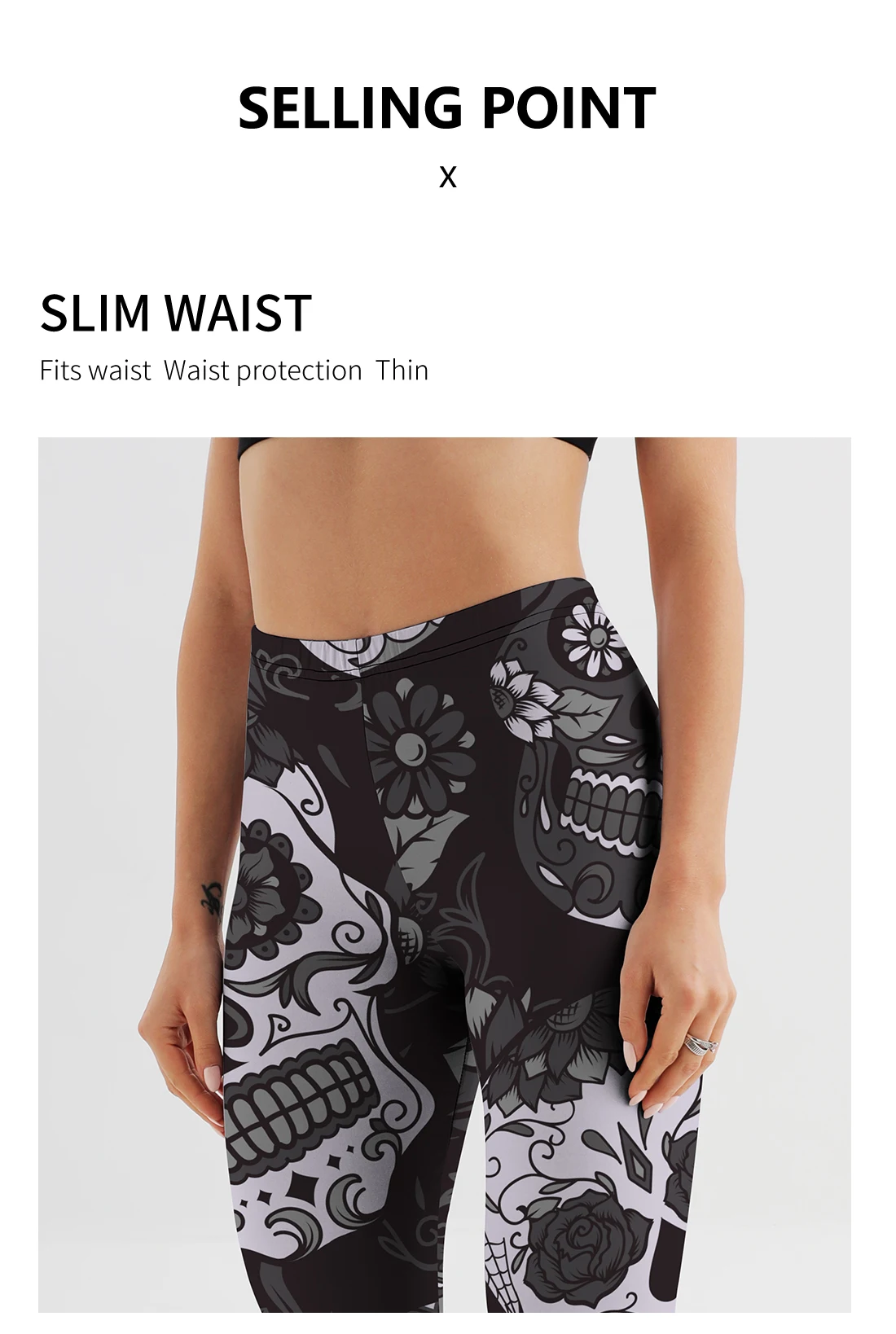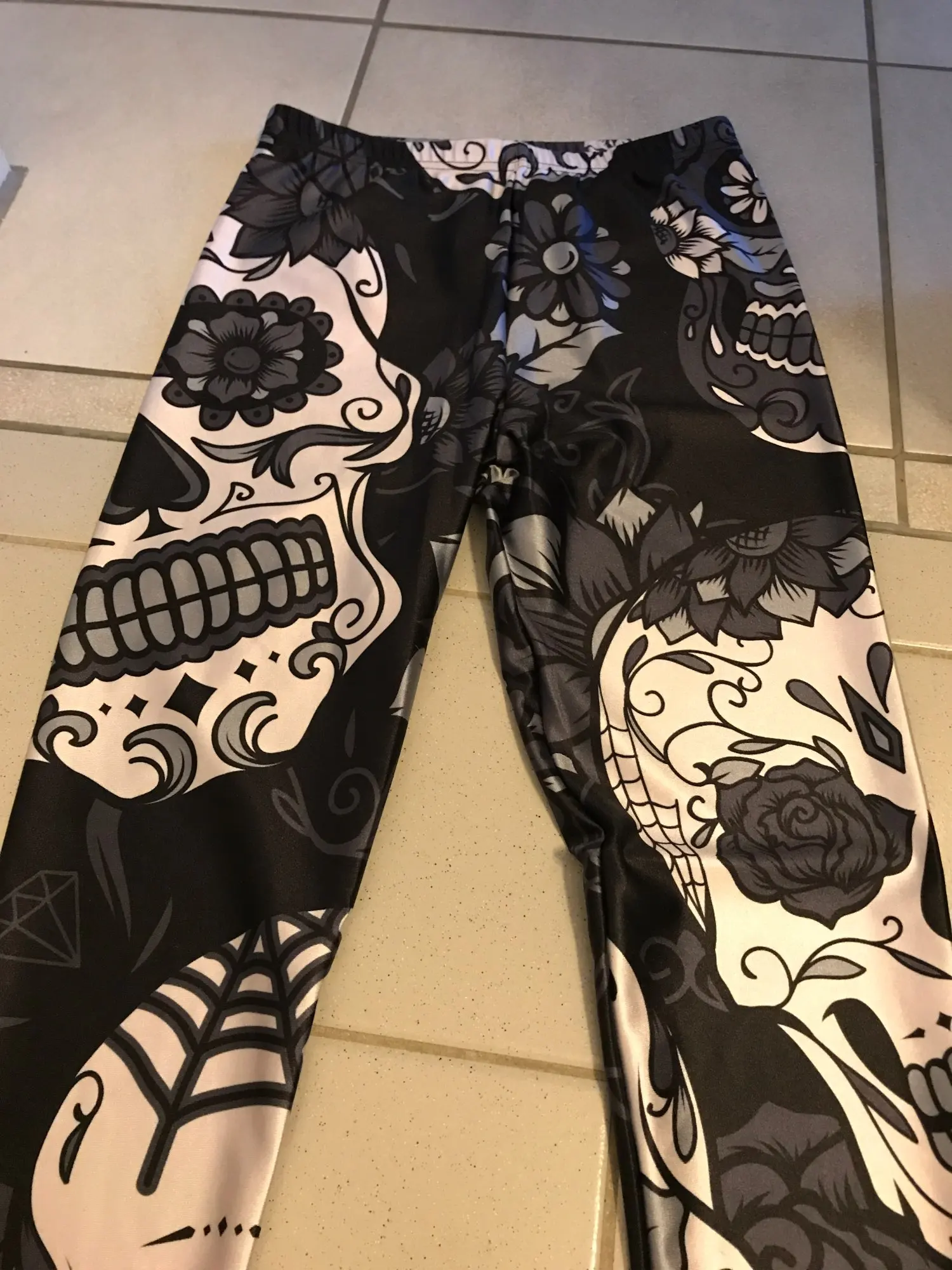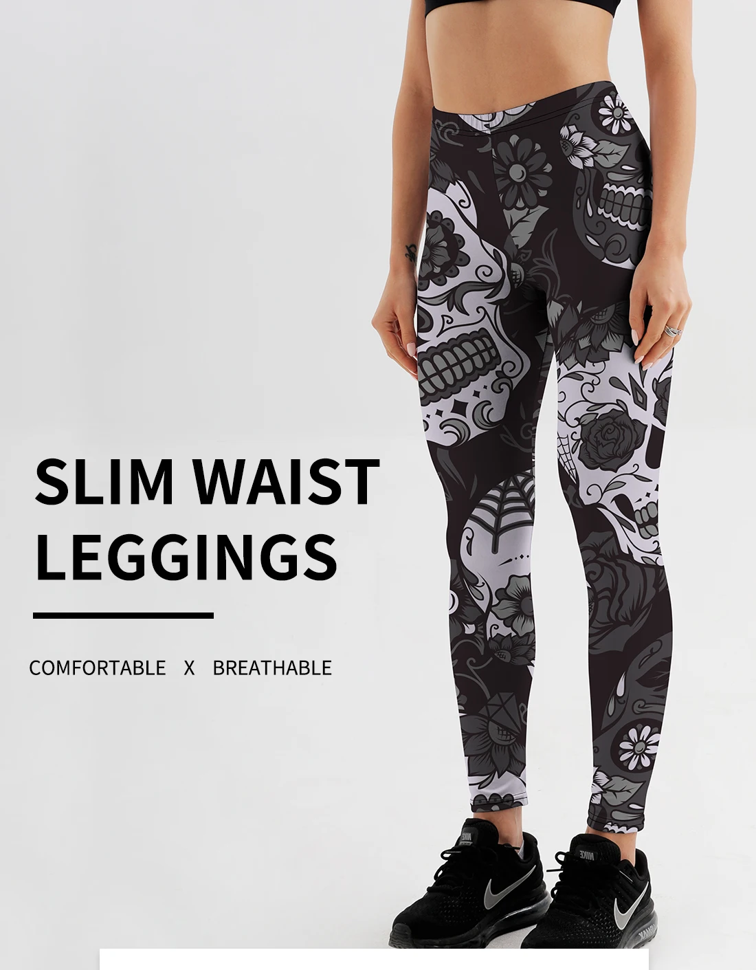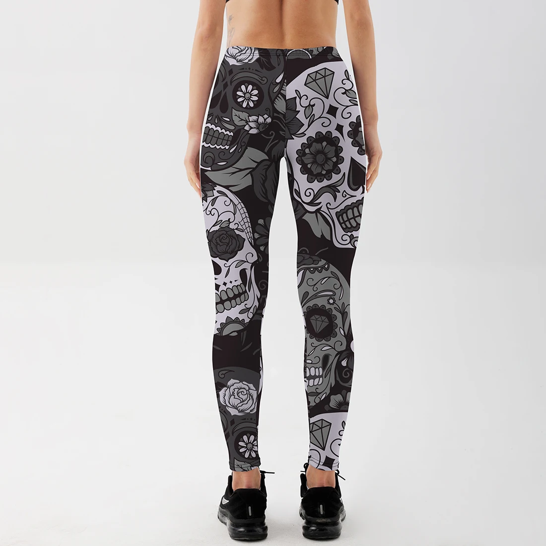 Женские леггинсы Qickitout, черно-белые облегающие пикантные модные Стрейчевые брюки с черепом для фитнеса, брюки с цифровым принтом