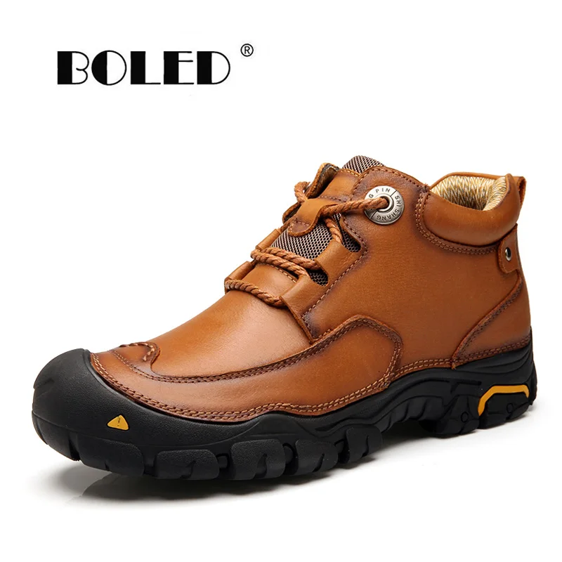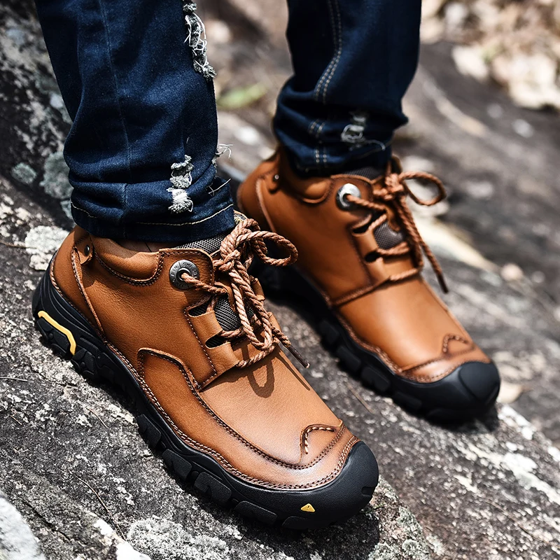 Мужские ботинки ручной работы; Ботильоны из натуральной кожи; Водонепроницаемая уличная прогулочная обувь; Мужская обувь размера плюс; Осенняя обувь