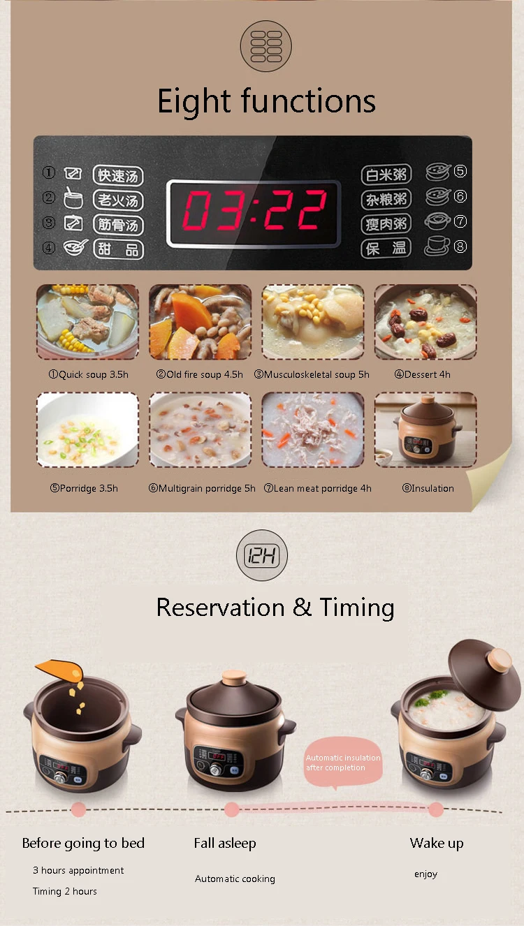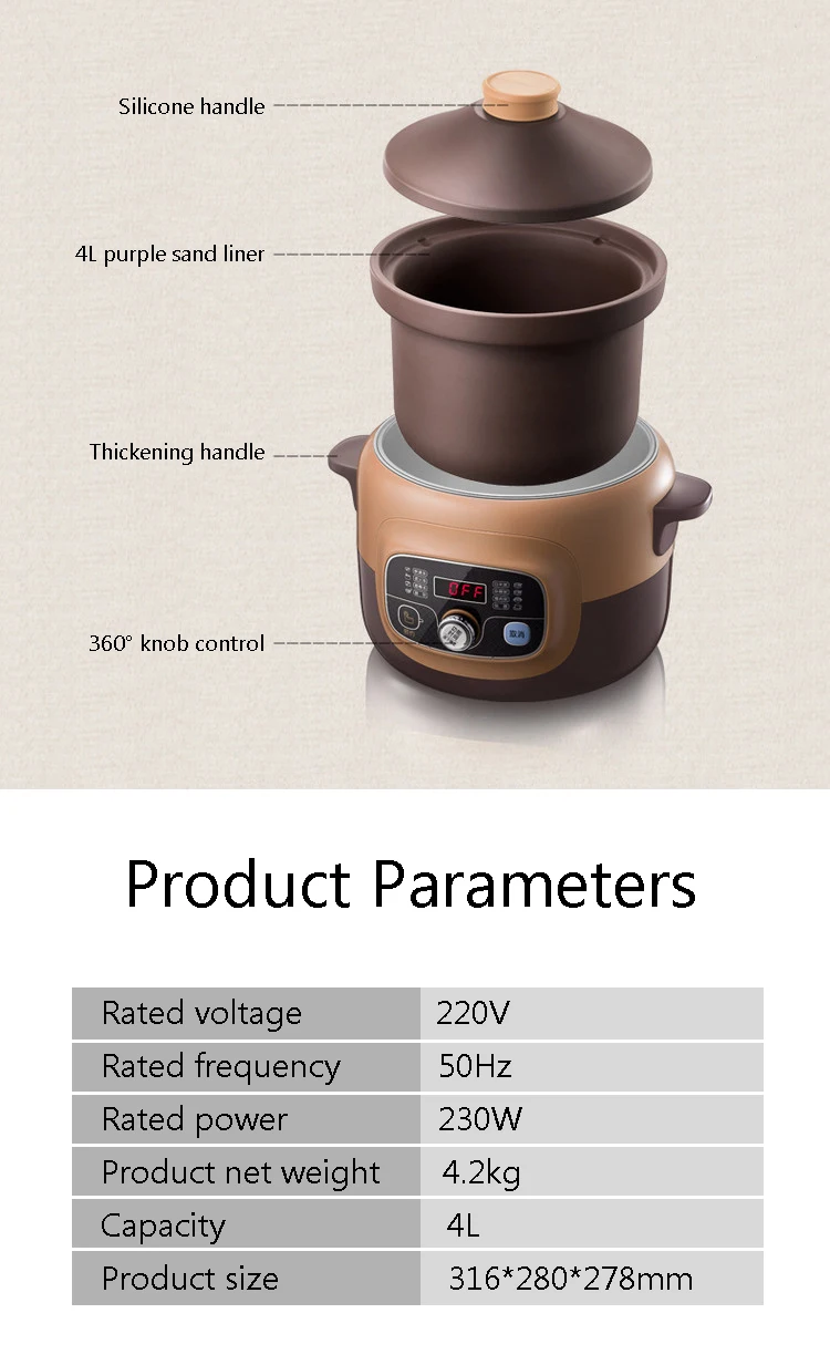 Автоматическая бытовая электрическая медленная варочная машина DMWD с фиолетовым песком, высококачественный паровой керамический котелок с объемом 4 л