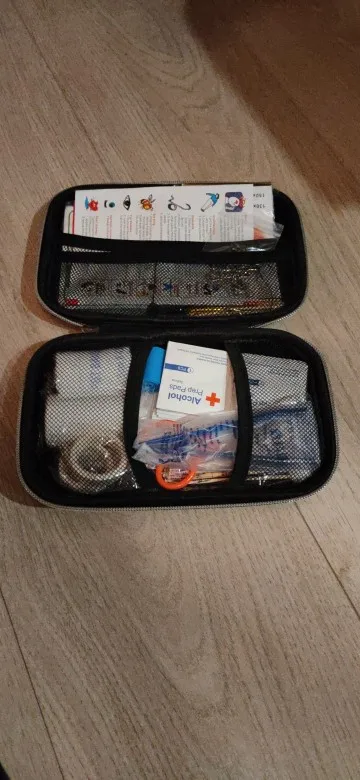 Дошла очень быстро, обычная аптечка, вроде бы внутри есть все необходимое. Жаль нет жгута, придётся докупать. Содержимым не пользовался ещё и надеюсь не понадобиться.