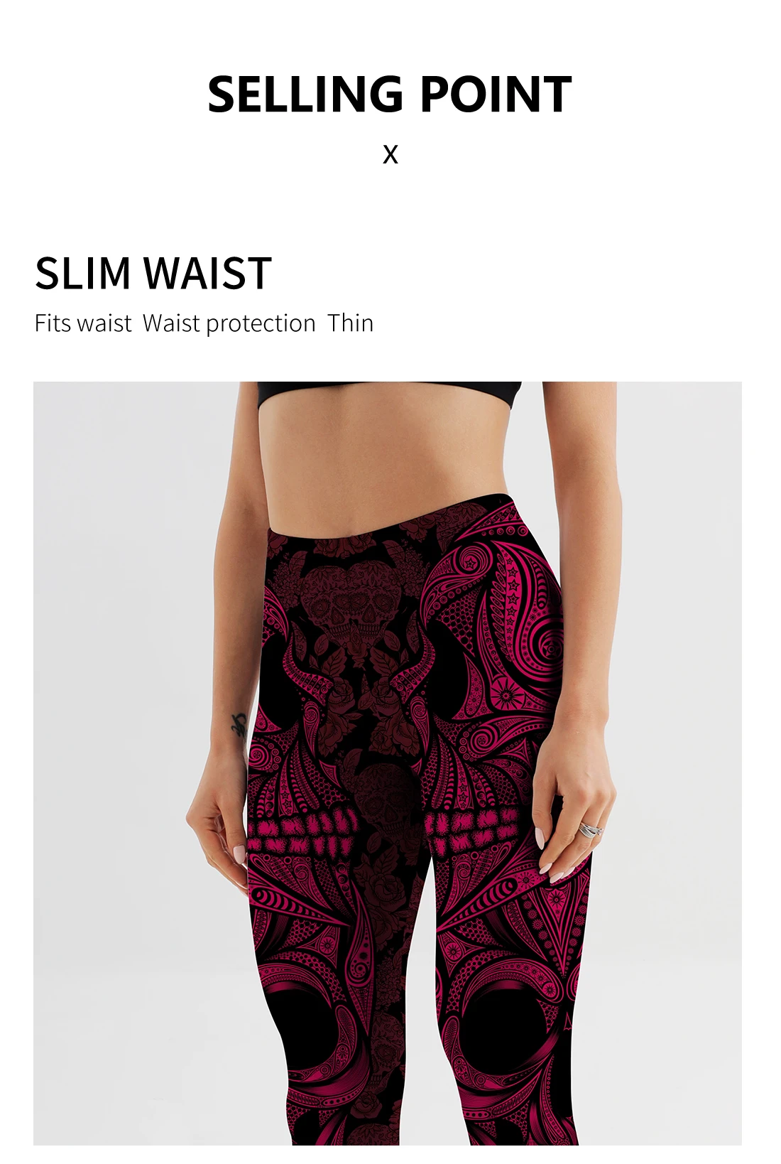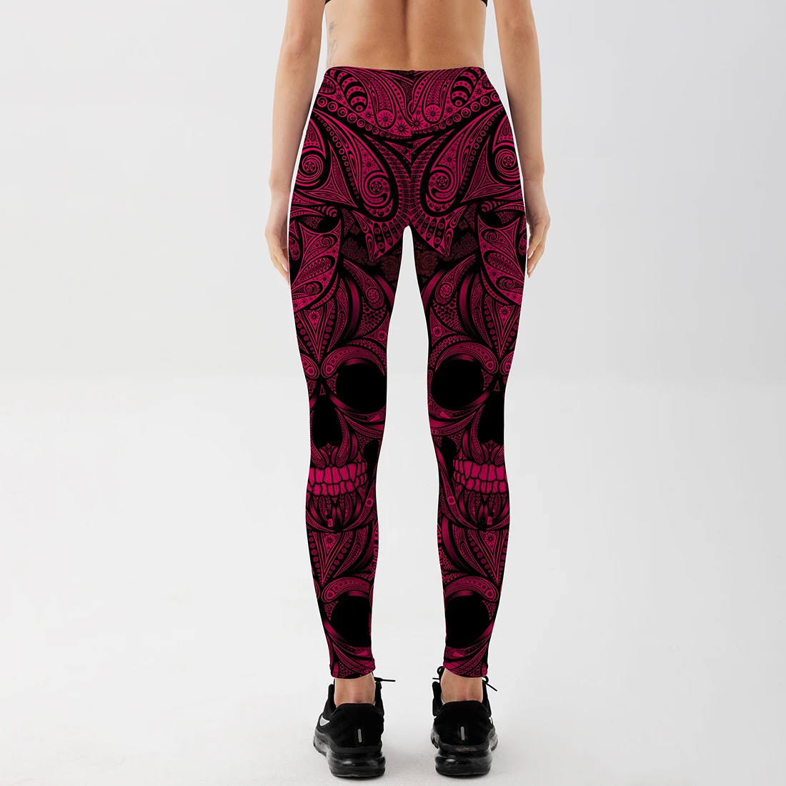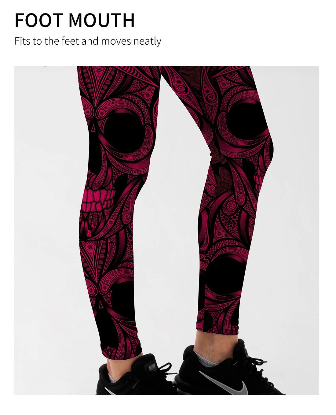 Леггинсы женские, с высокой талией, для фитнеса, с принтом черепа и...