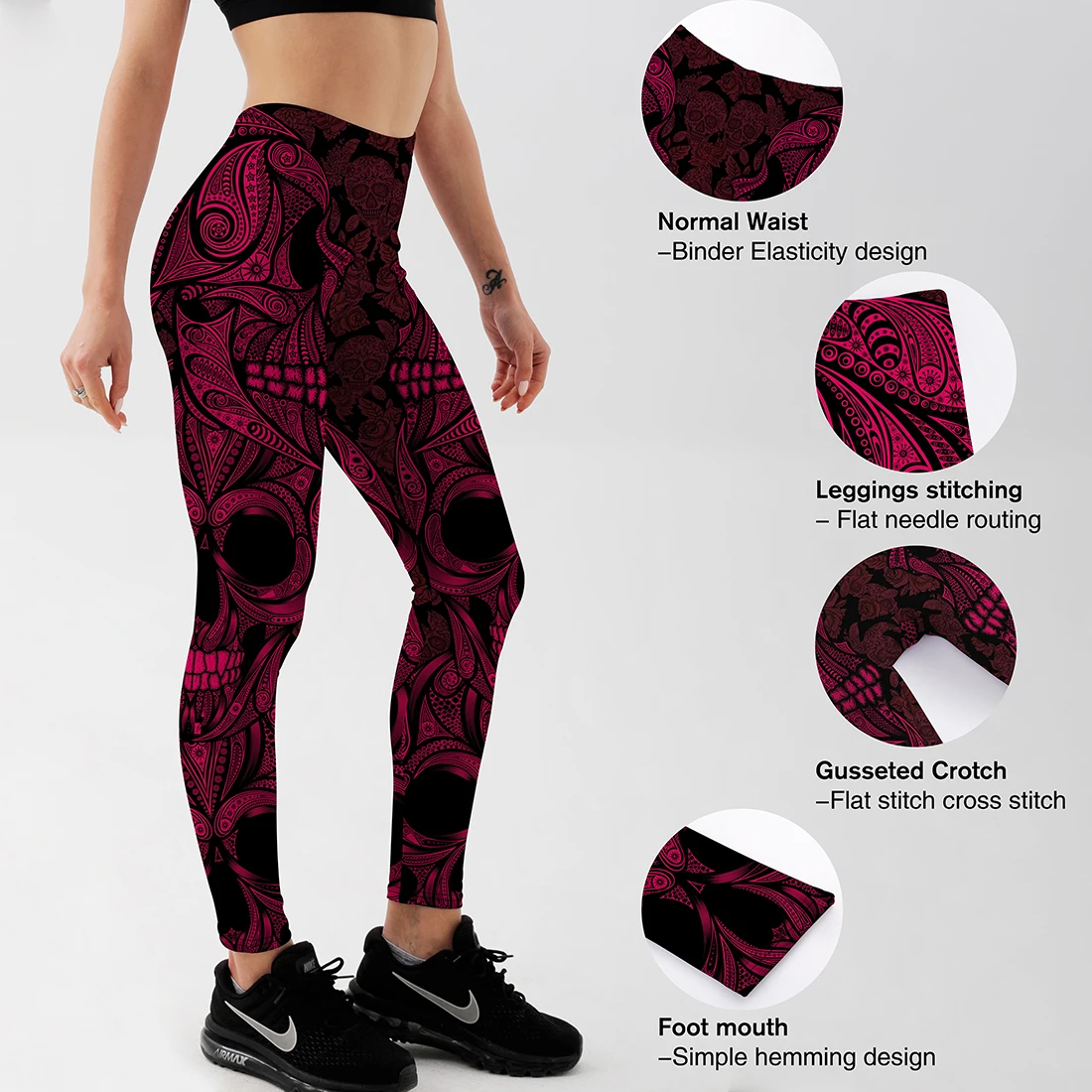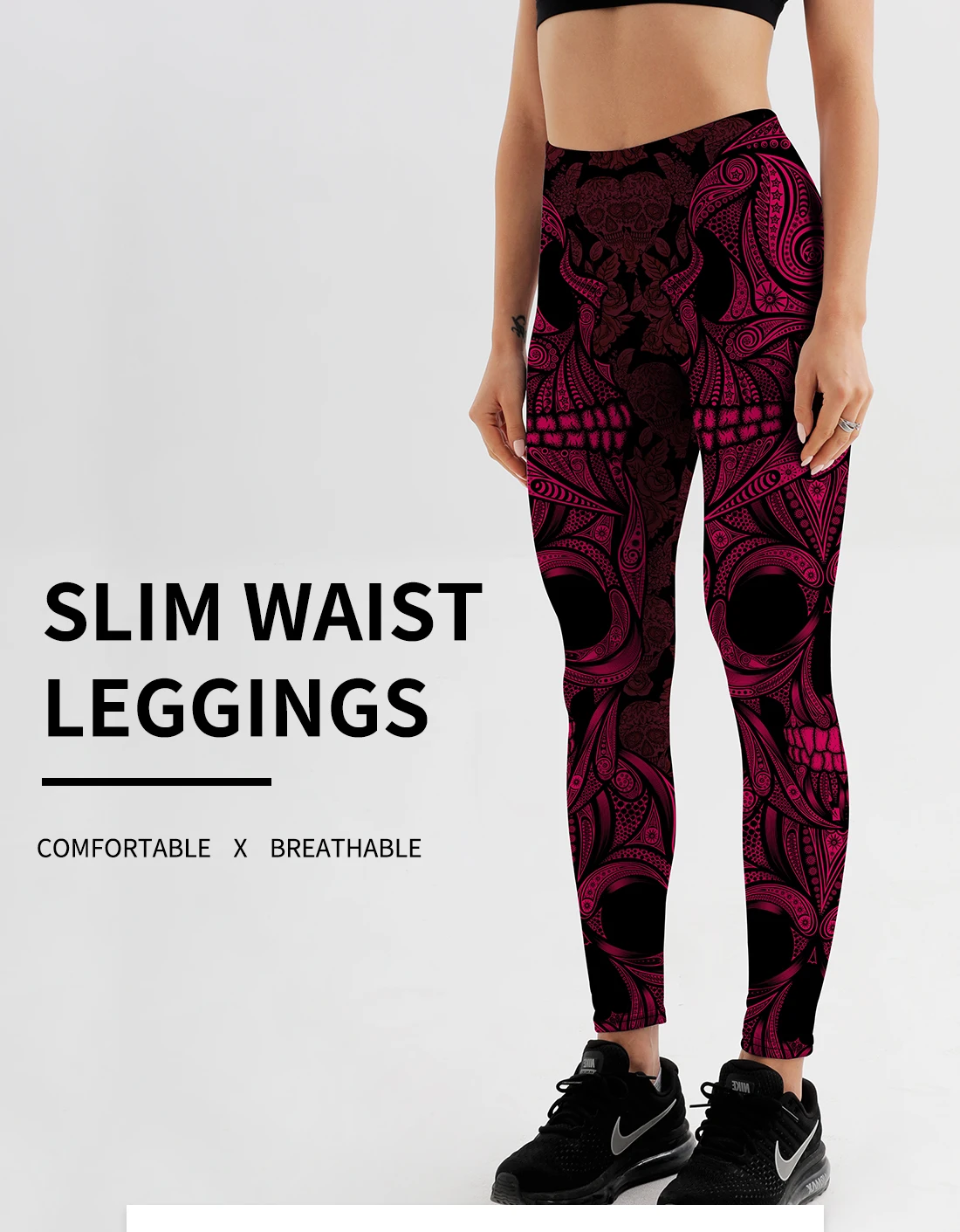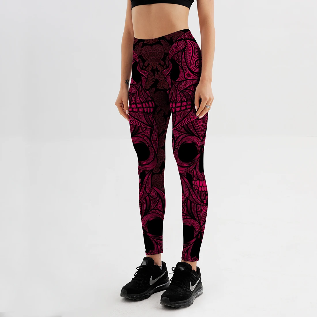 Леггинсы женские, с высокой талией, для фитнеса, с принтом черепа и...