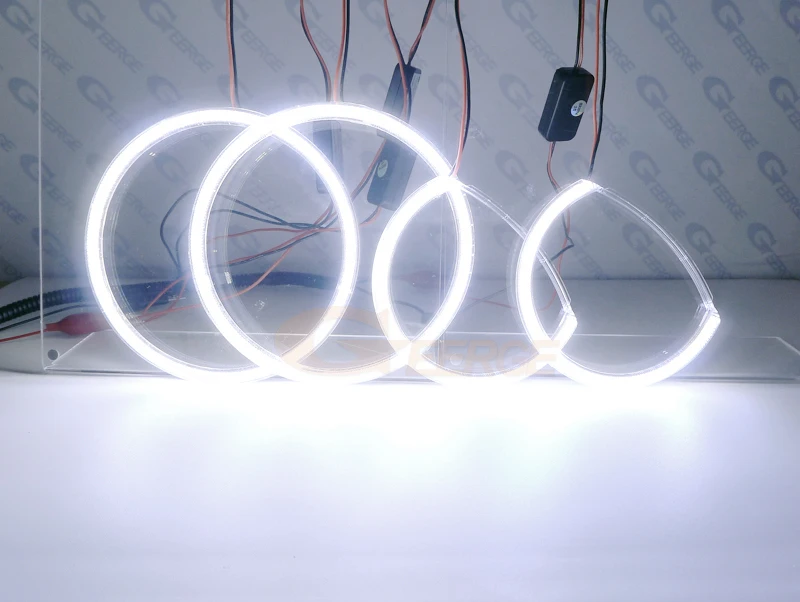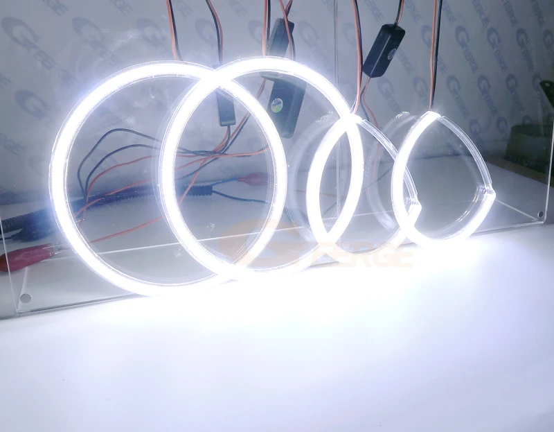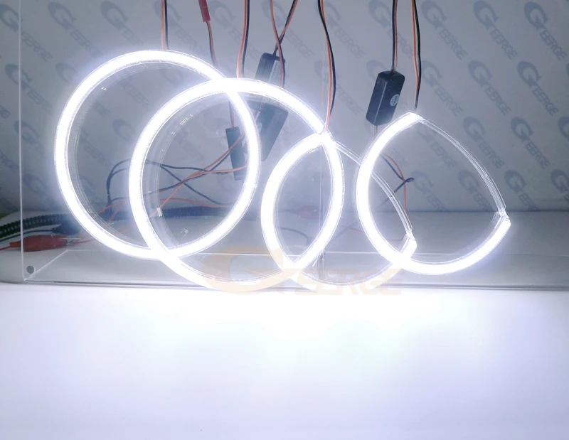 Этот набор включает в себя абсолютно новые, 4 шт набор ксеноновых холодных белых COB LED angel eye halo кольца, это хорошо для пользовательской модернизации фар.