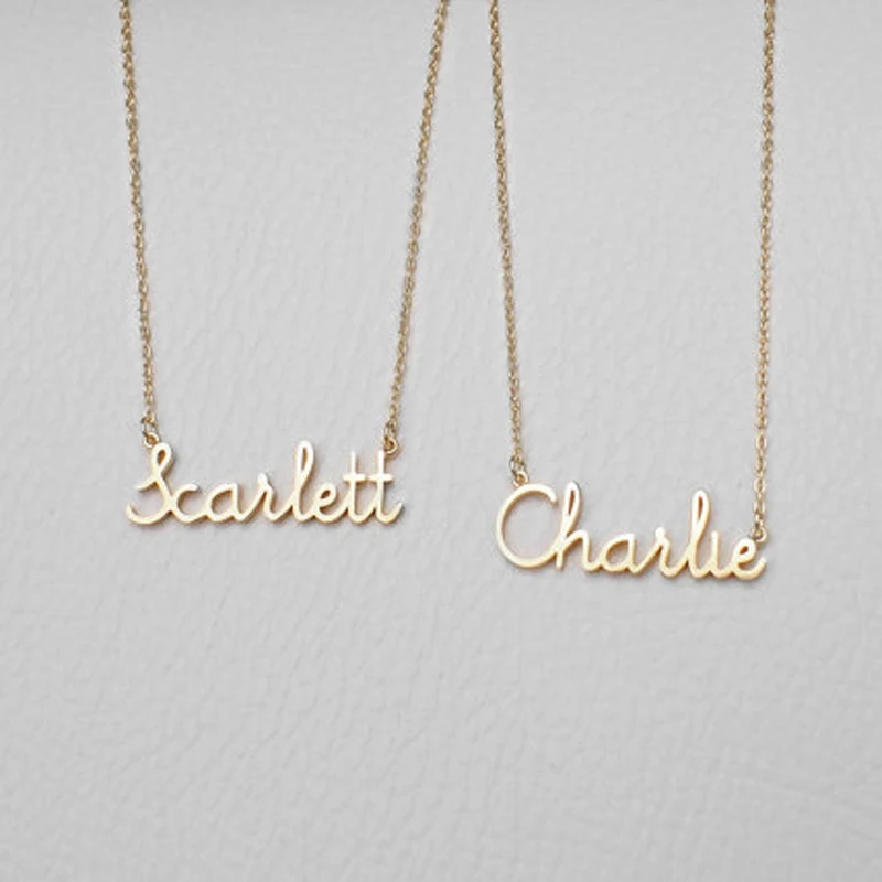 Романтический подарок, колье из нержавеющей стали 316L с индивидуальным именем на заказ, цвет розового золота, рукописное письмо, подпись, индивидуальное ожерелье
