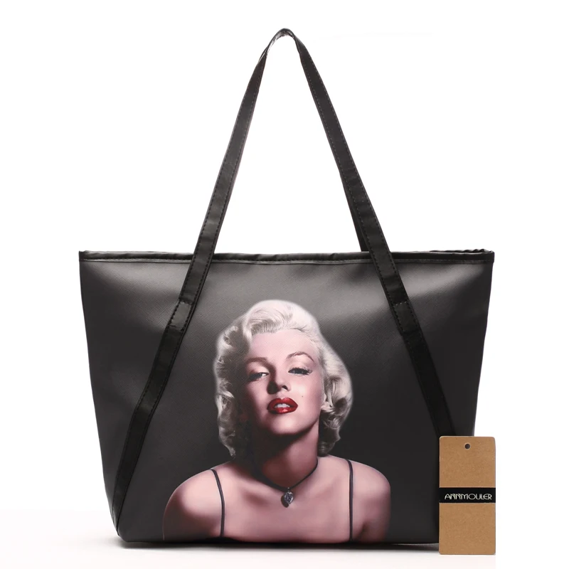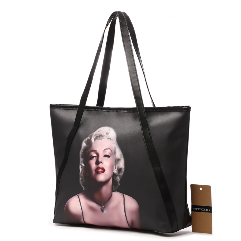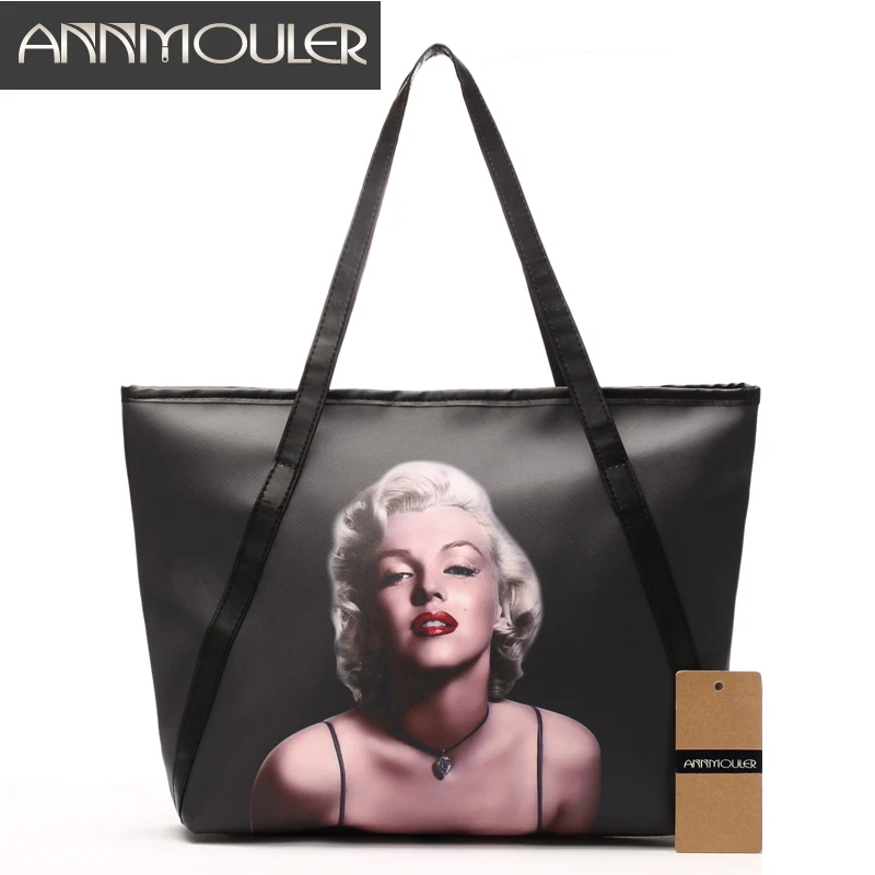 Annmouler Брендовые женские сумки через плечо, большие дизайнерские сумки, черная женская сумка из искусственной кожи с принтом Мэрилин Монро, модная сумка-тоут, кошелек