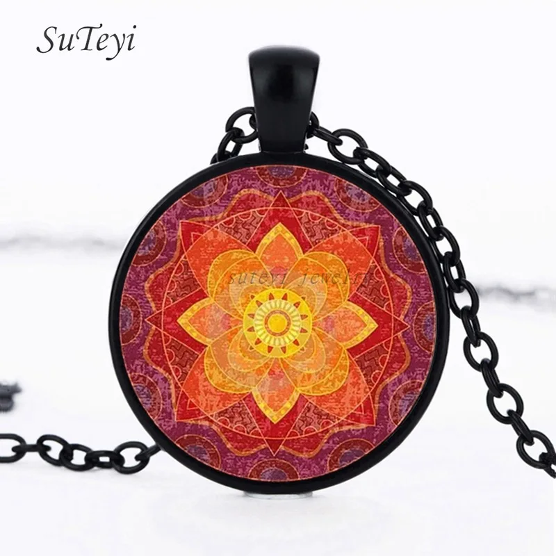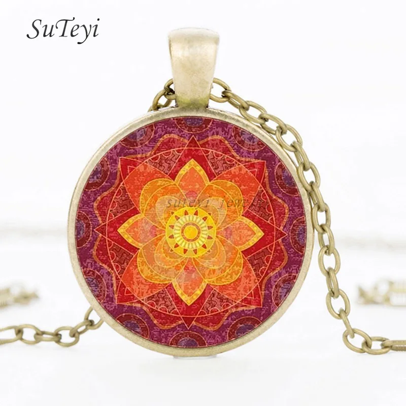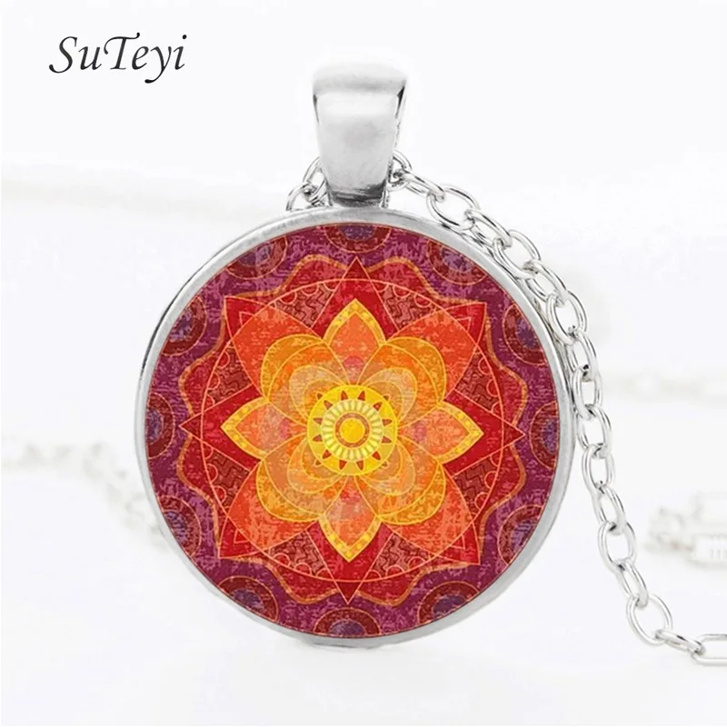 SUTEYI Цветочные фотоподвески, хна, Йога, стеклянное ожерелье, драгоценности, Женское Ожерелье