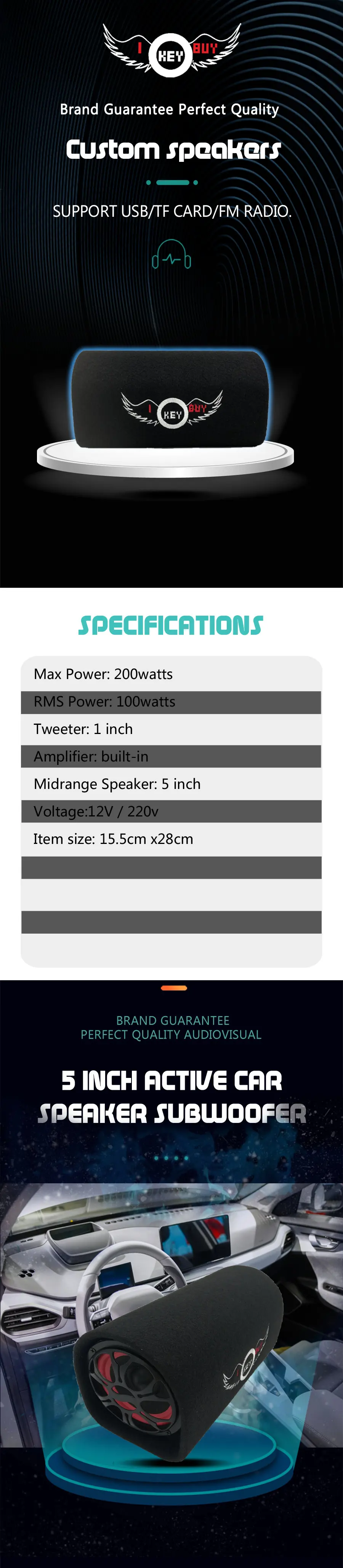 Автодинамик I KEY BUY, 5 дюймов, 12 В, 220 В, 100 Вт, Hifi Bluetooth, активный двигатель, громкий динамик