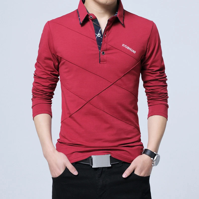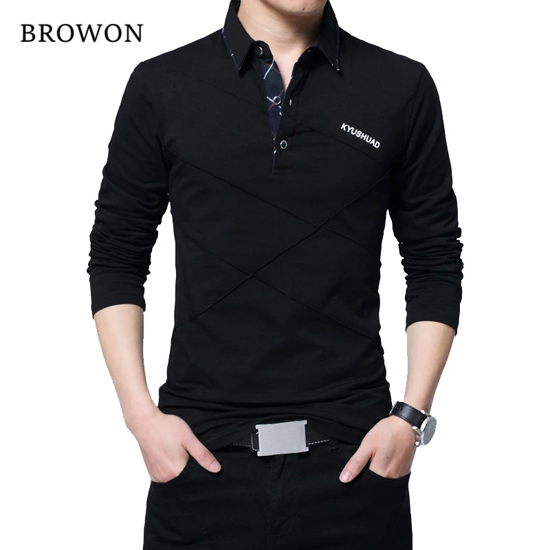 Мужская хлопковая футболка BROWON, длинная Приталенная футболка, с отложным воротником, размера плюс