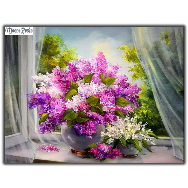 MOONCRESIN Diy алмазная живопись, вышивка крестиком, сиреневый цветок, 5D алмазная вышивка, искусственная вышивка