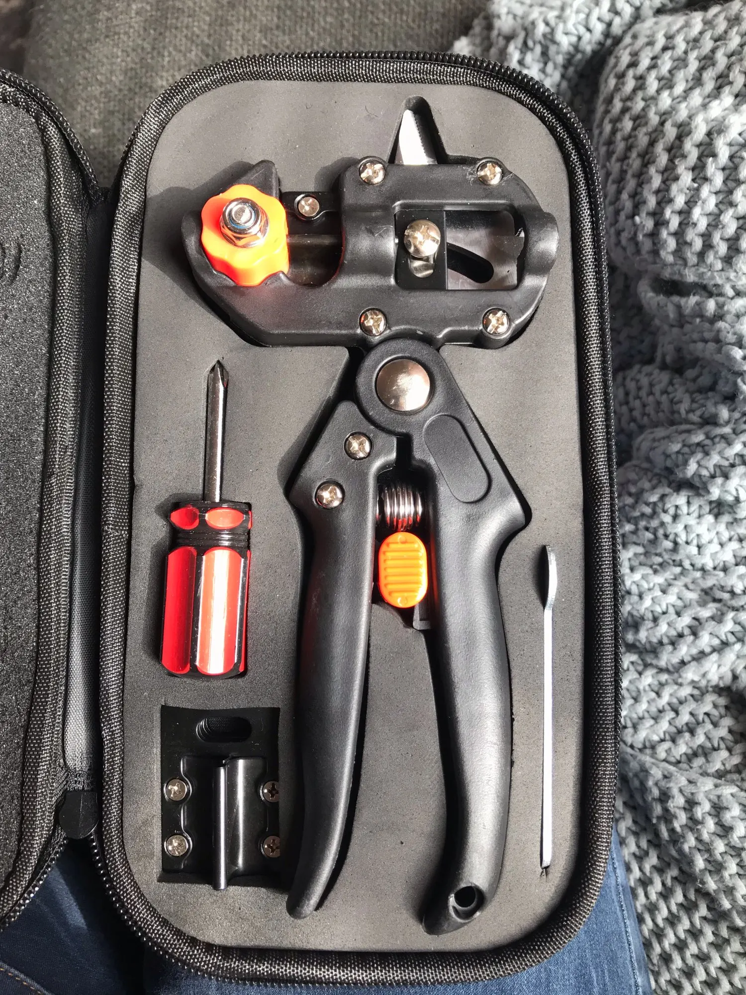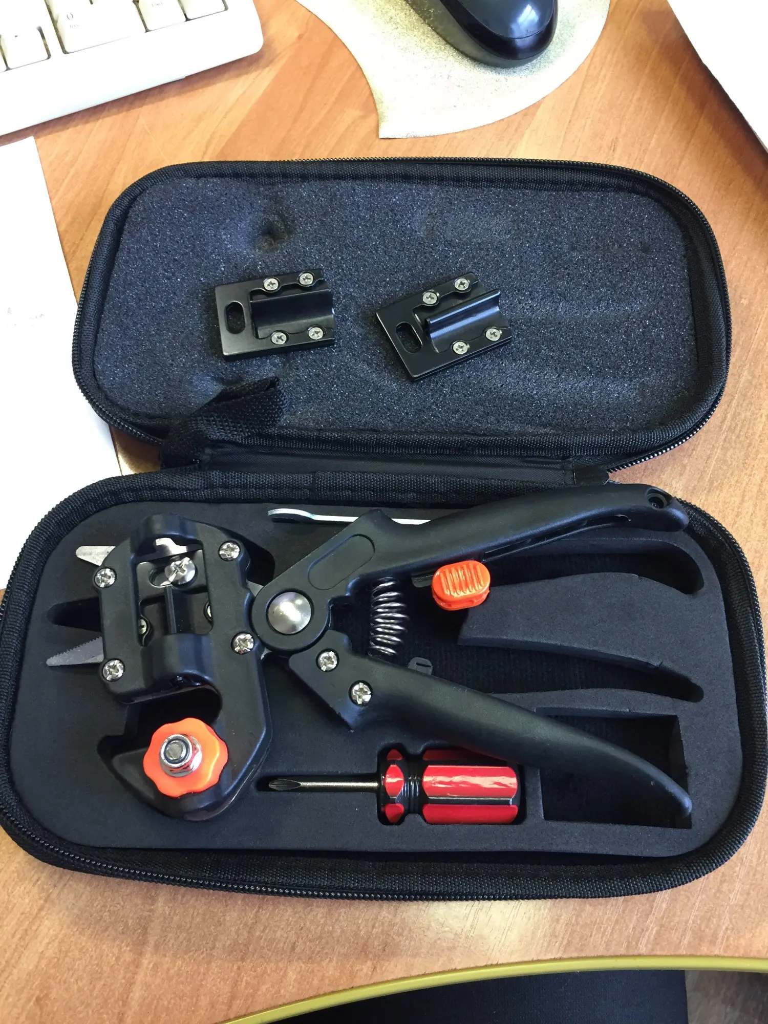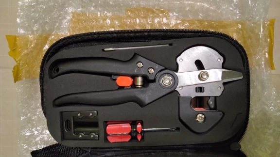 Отличные ножницы, очень острые, поставляется с различными штампами для прививки больших или небольших веток