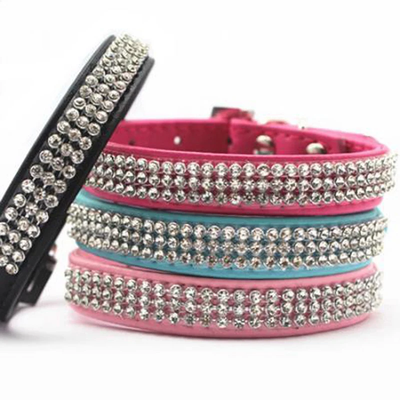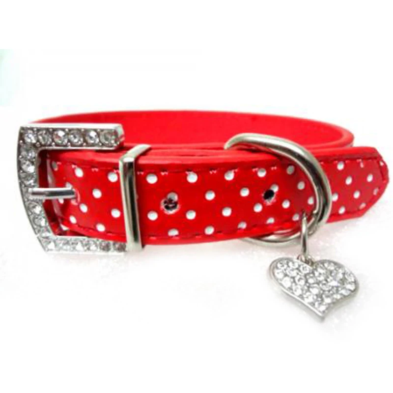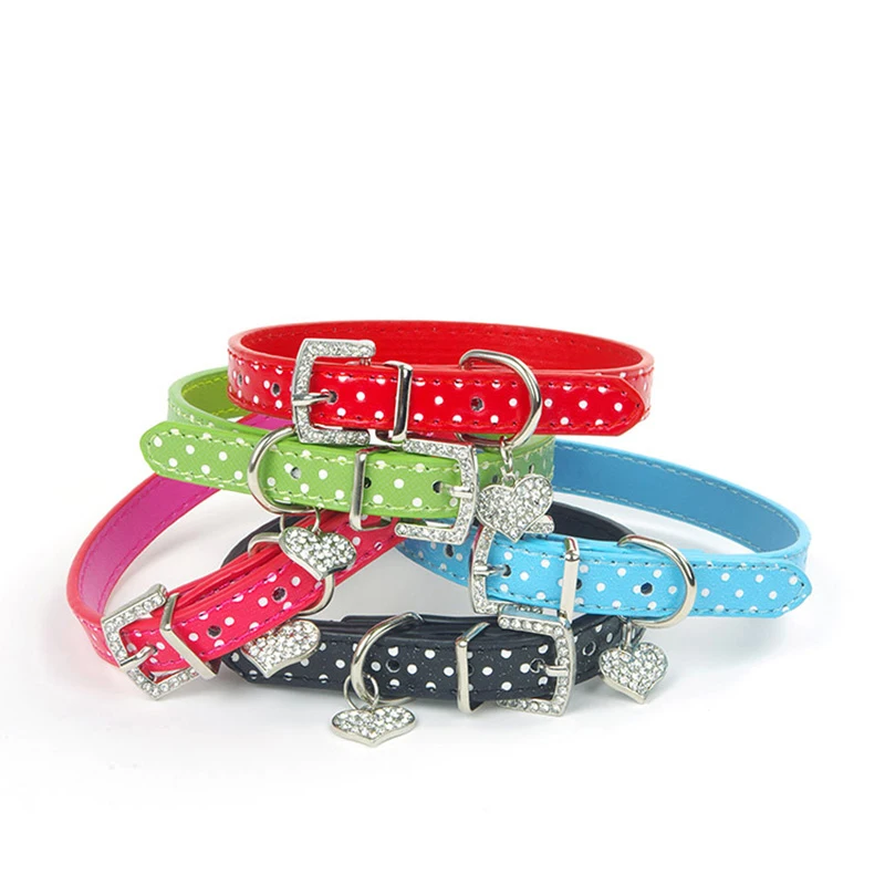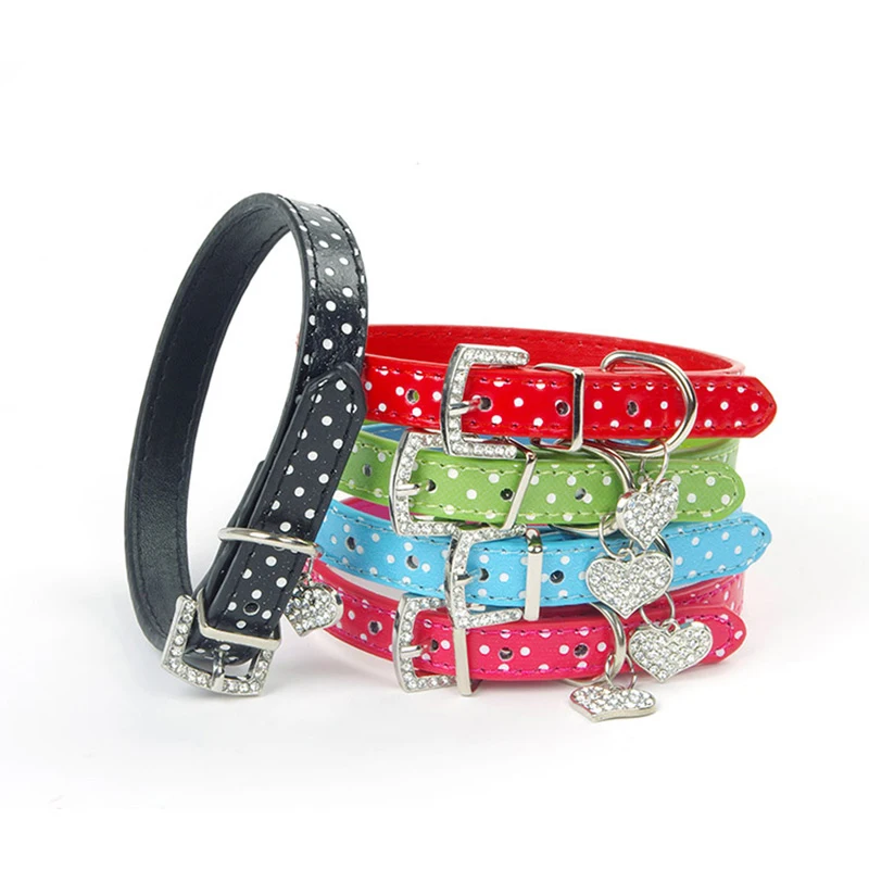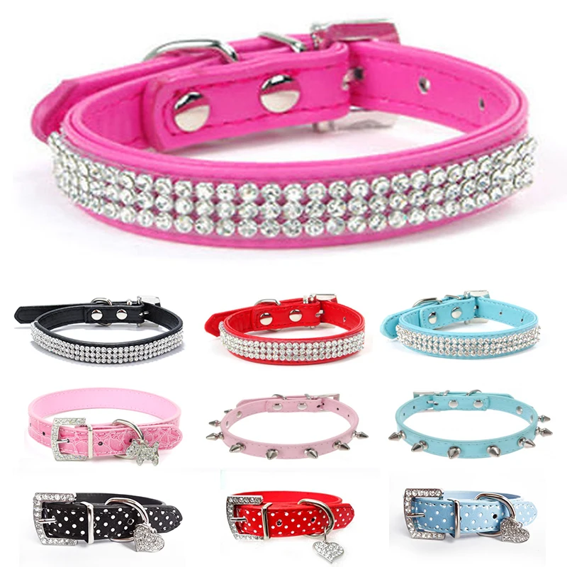 Ошейник из искусственной кожи с бантом и кристаллами для маленьких собак, ожерелье для щенков и кошек, поводок для собак, аксессуары для собак, Собачьи Ошейники со стразами