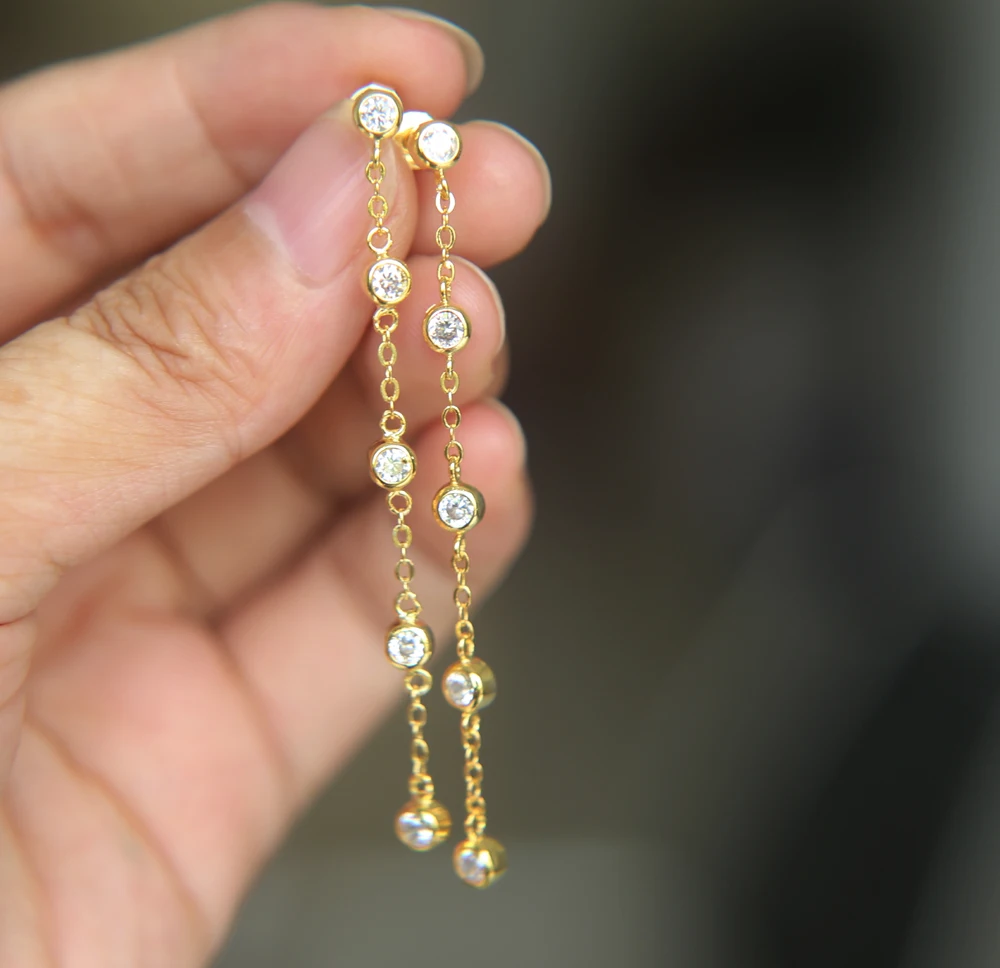 2021 Горячая Мода ювелирные изделия из жемчуга 5 шт. ободок CZ кубический цирконий золото Цвет тонкий элегантный длинная цепь кисточкой CZ Очарование Серьги-Подвески