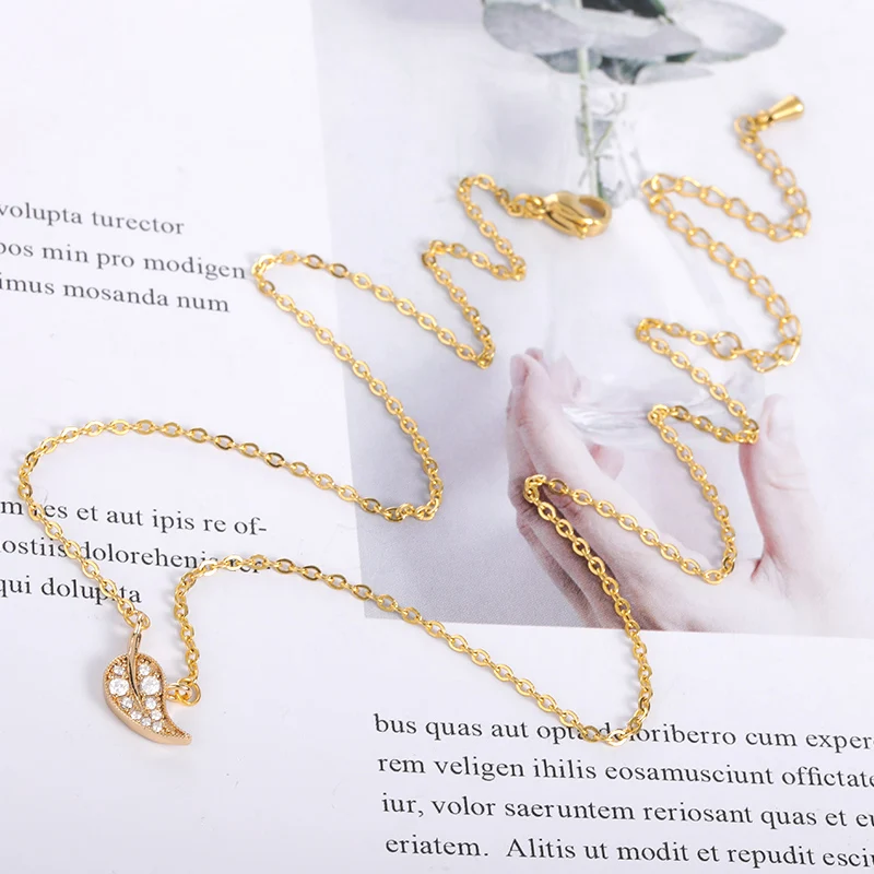 V привлечь Австрийские кристаллы листьев Ожерелья для мужчин кулон свадебные украшения Нержавеющаясталь звено цепи Цепочки и ожерелья для Для женщин