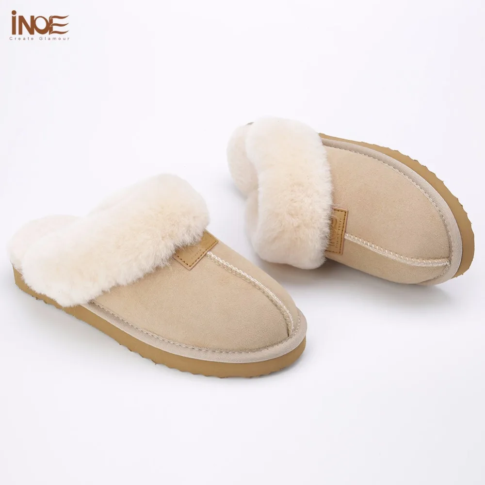 INOE женские зимние тапочки из натуральной овечьей замши с подкладкой из овечьего меха мокасины Cazy домашняя обувь бабуин в доме на плоской подошве