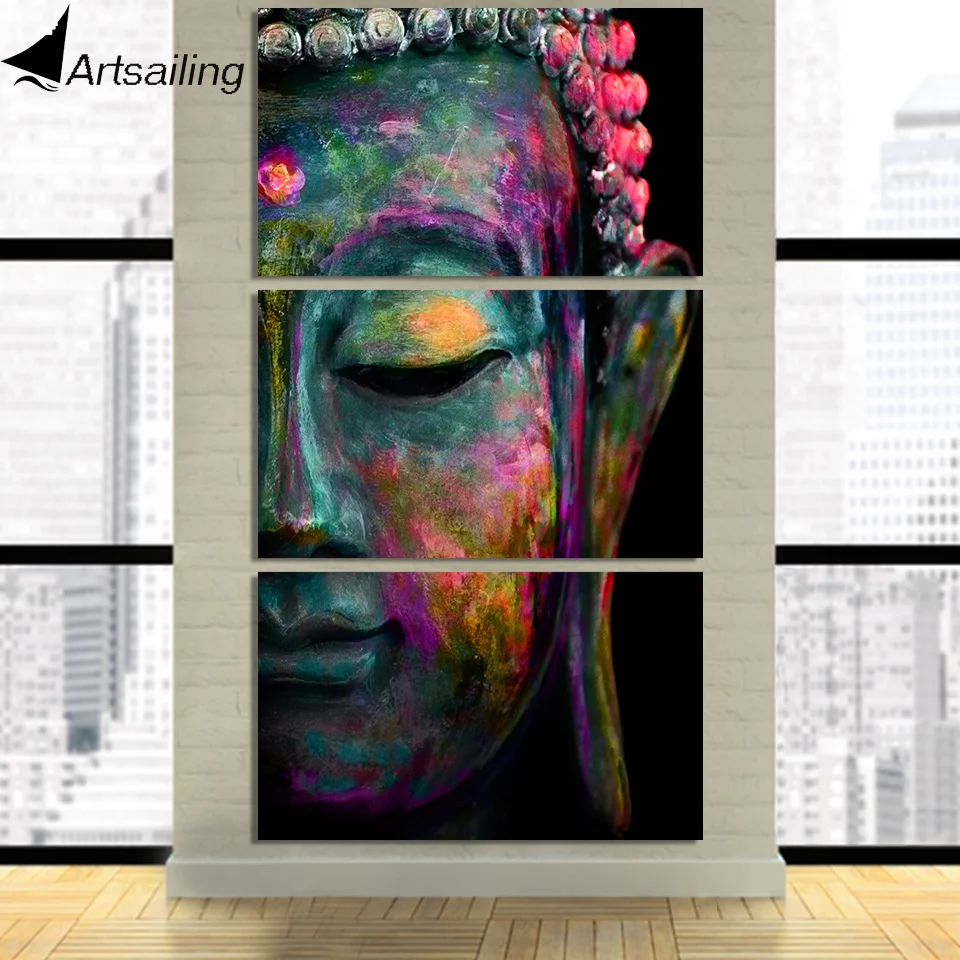 Модульная Картина на холсте, с изображением лица дзен, Будды, 3 шт., CU-2170D