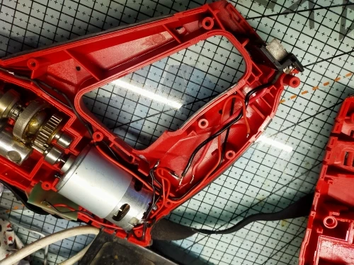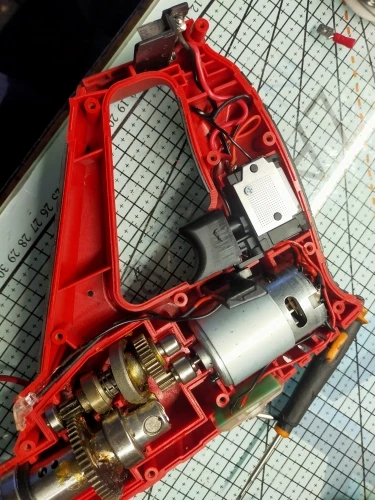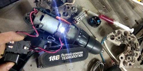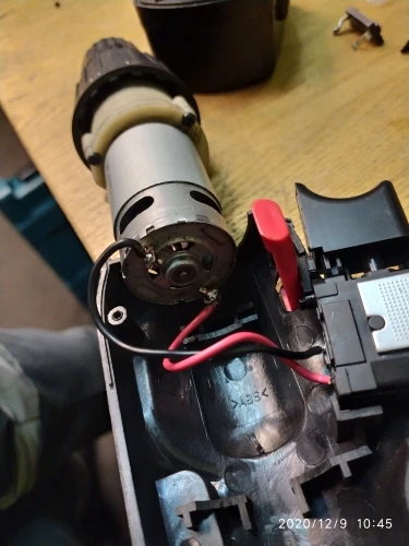 По форме идеально на Makita 6317D, как родная. Далее допилить: выход +- поменять местами (можно и оставить, но крутится в непривычную сторону). Колодку для акк припаять родную. В ручке между пальцев под светодиод дырку сделал (около винта).