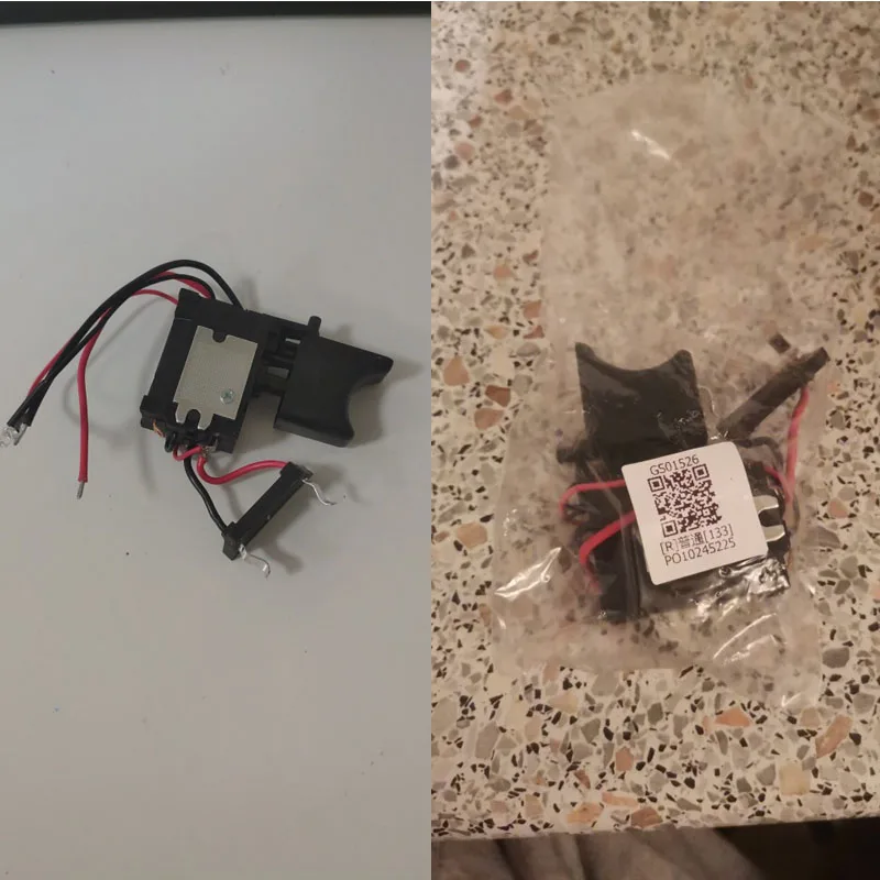 переделал свой старый шурик skil. раньше при включении сразу максимум крутящий момент, сейчас с новой кнопкой регулировка по нажатию, плюс диод. пришлось конечно пошаманить - там подложить, там отпилить, саму кнопку поменять на старую. дороботкой доволен, товар отправили быстро, доставка 2 недели.