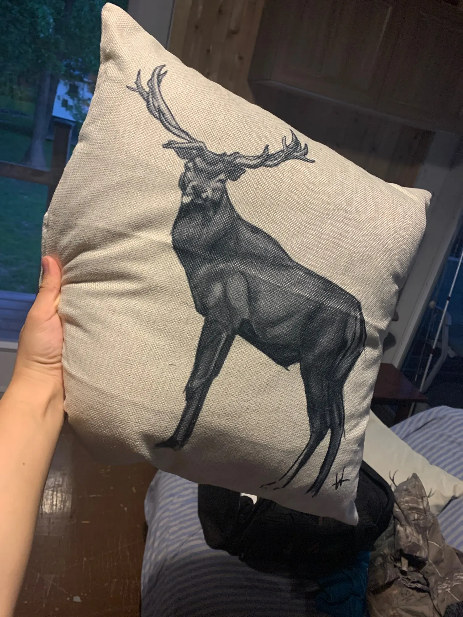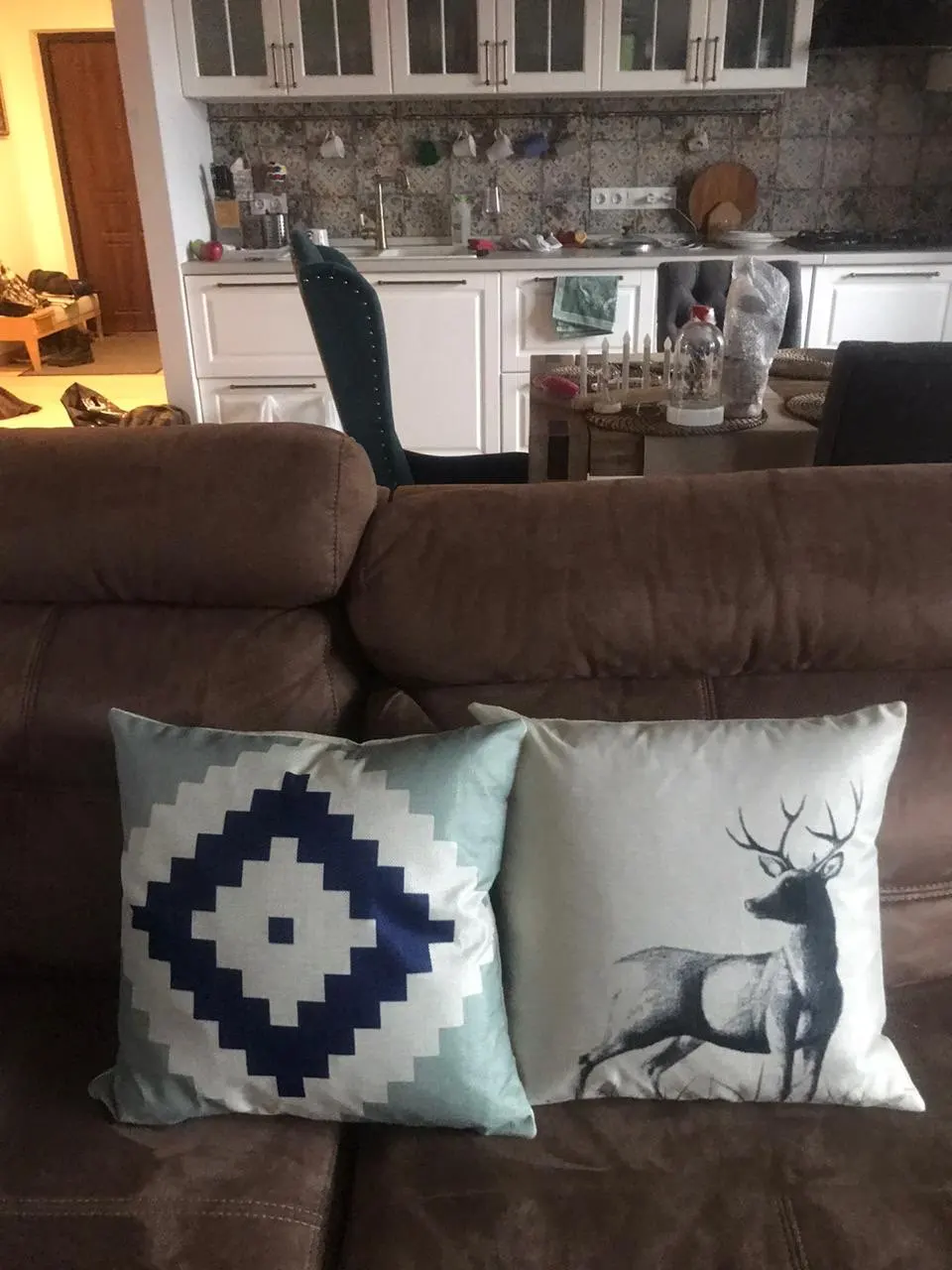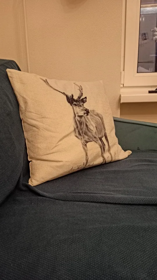Хороший чехол на подушку, выбрала с рисунком, где олень на фоне нот. Плохо, что ткань редкого переплетения. На фото товара, где показана застежка молния, это видно, так что обращайте внимание на такой момент при заказе. Меня это устраивает, так как очень понравился рисунок. Заказывала у других продавцов похожий товар, но с иными рисунками - там ткань с более плотным переплетением.