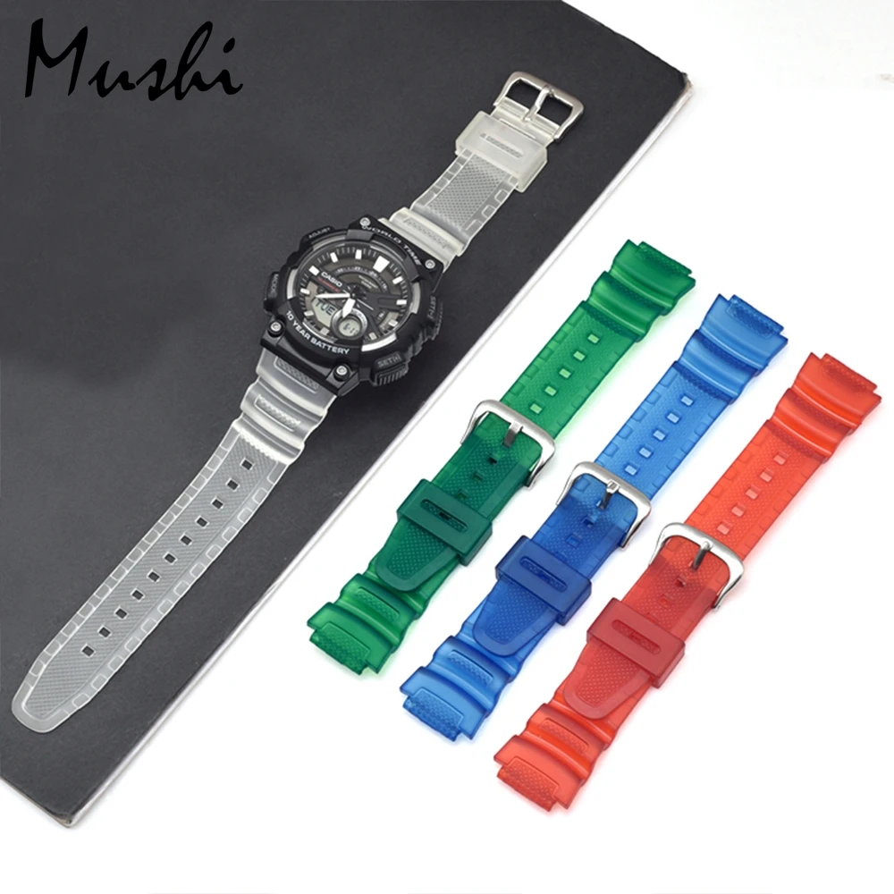 Ремешок резиновый для Casio AE-1000w AQ-S810WSGW-400H, силиконовый черный браслет для наручных часов с пряжкой с язычком, для Casio SGW-300H