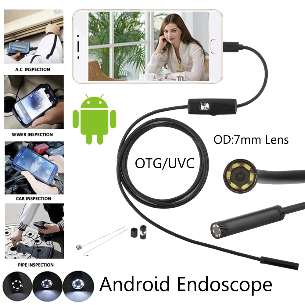 Камера-Эндоскоп Android для смартфона, Бороскоп с Usb-кабелем для обнаружения ушей в автомобиле, 7,0 мм, 6 светодиодов, длина кабеля 1 м, 2 м, 3,5 м, 5 м
