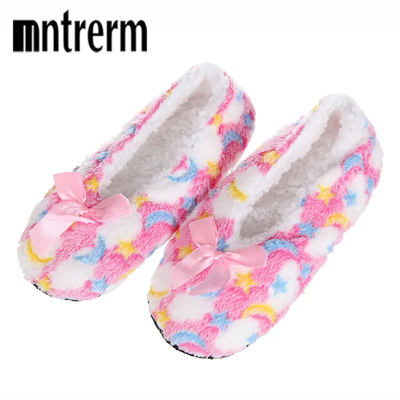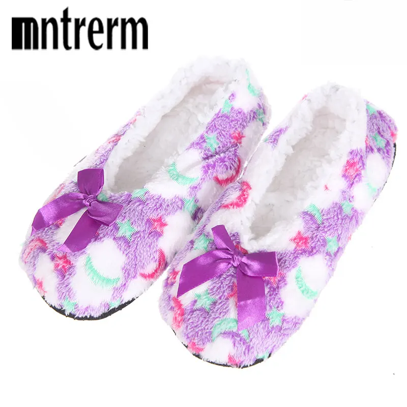 Mntrermзимние теплые домашние женские тапочки; Хлопковая обувь; Плюшевые женские тапочки; Флисовая домашняя обувь с бантом; Женские Тапочки