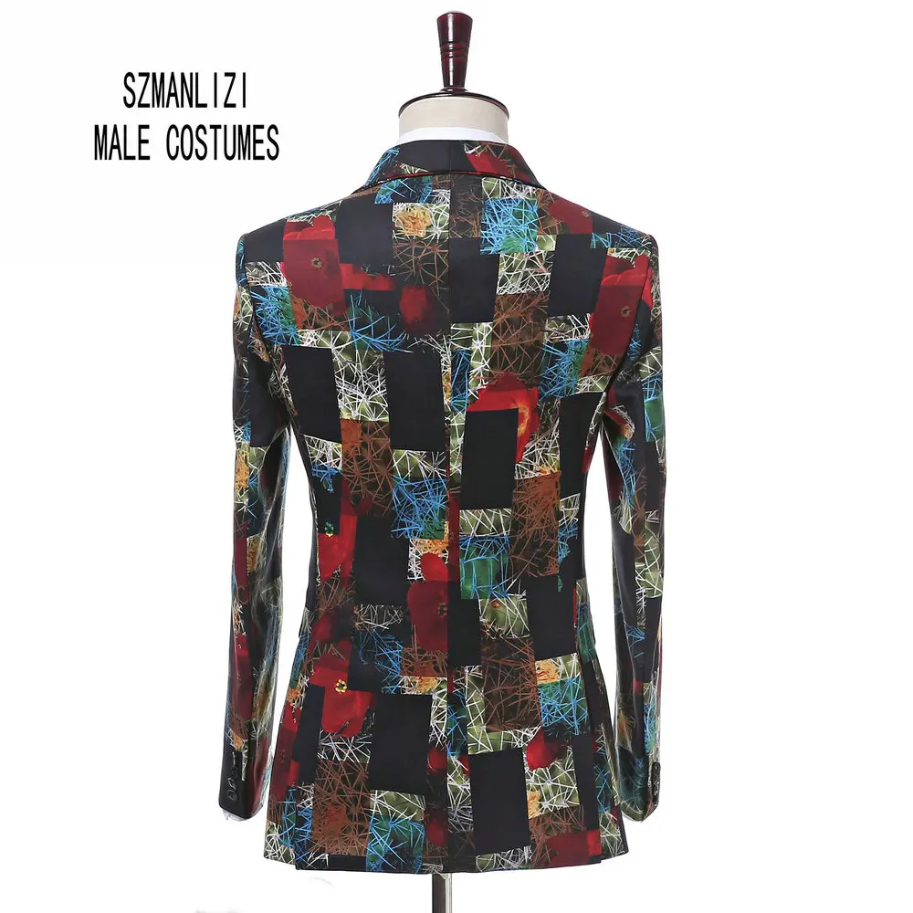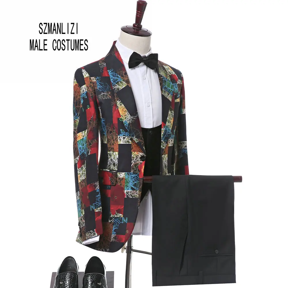 Новинка 2017, Брендовые мужские костюмы, шаль с отворотом, Свадебные смокинги для мужчин, костюм жениха, приталенный Блейзер с принтом, костюм жениха, Homme