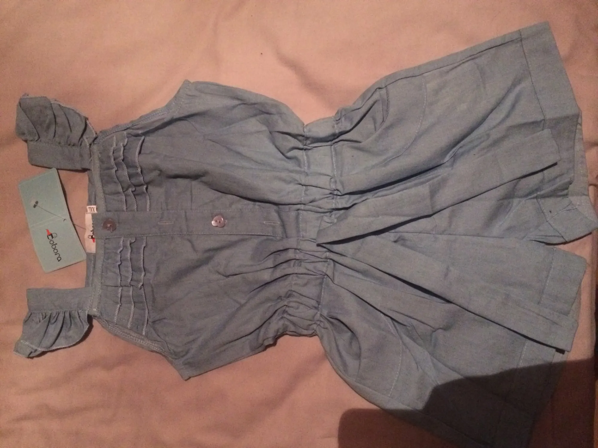 Абсолютно новый продукт. Свободные нитки. Свернутые нитки. Моему 2 году можно было бы сшить лучше, чем это. Я так разочаровался этим товаром, я с нетерпением жду его и был впечатлен, как быстро он пришел, но я не могу даже надеть его на своего ребенка, как плохо он был сделан