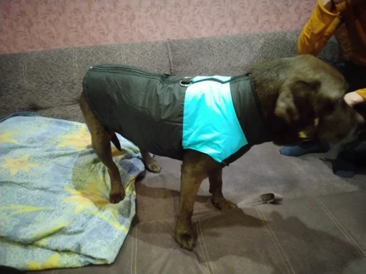 Качество отличное. Доставка быстрая. Около 10 дней в Красноярский край. На лабрадора подошёл размер 5XL.