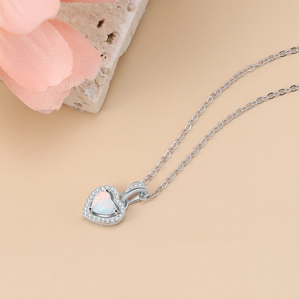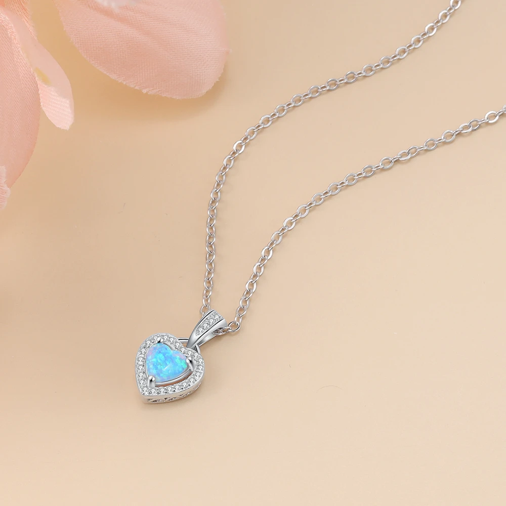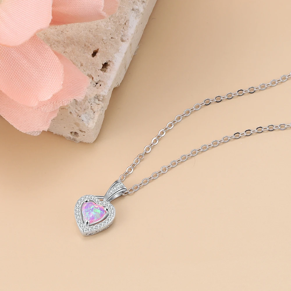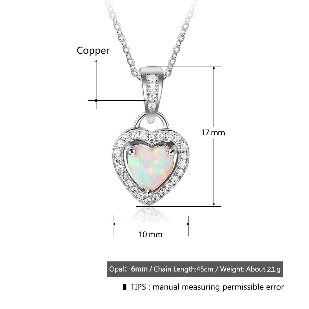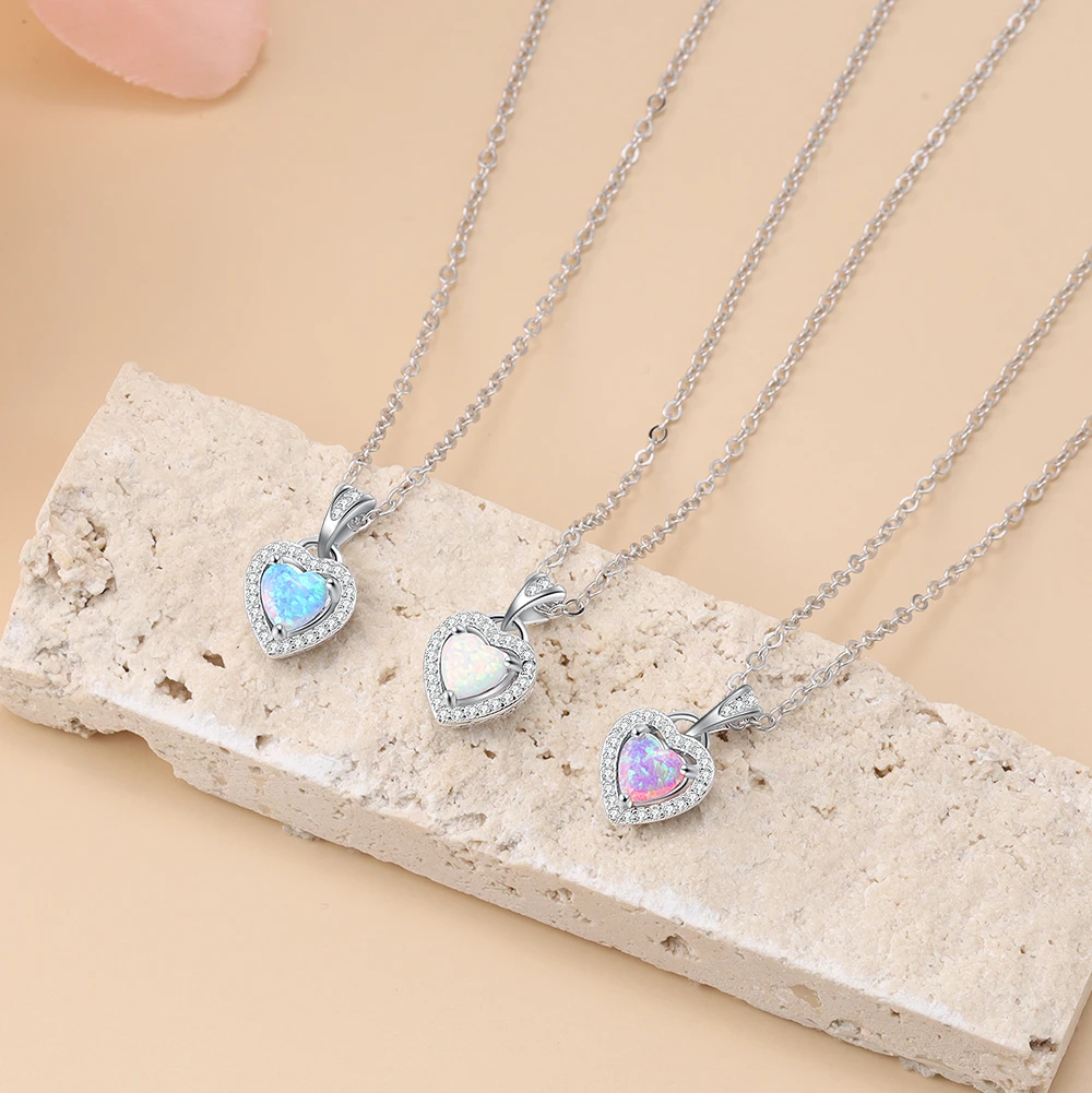 Ожерелья серебряного цвета в форме сердца, белого, розового, синего цвета, с опалом, ожерелья и кулоны с кубическим цирконием, модные украшения, подарок для женщин