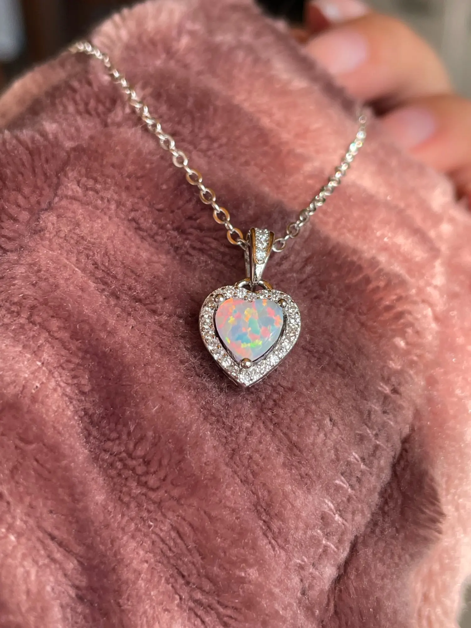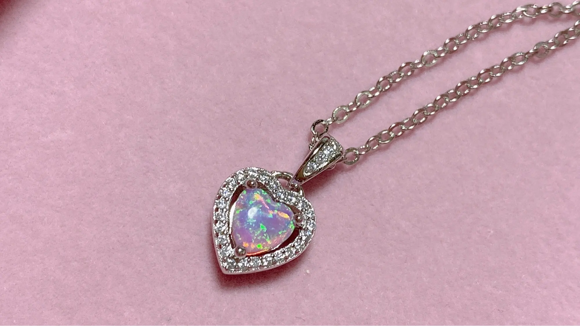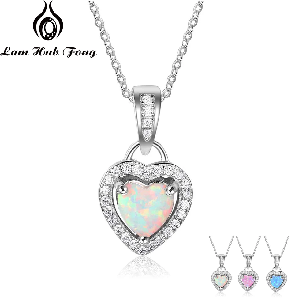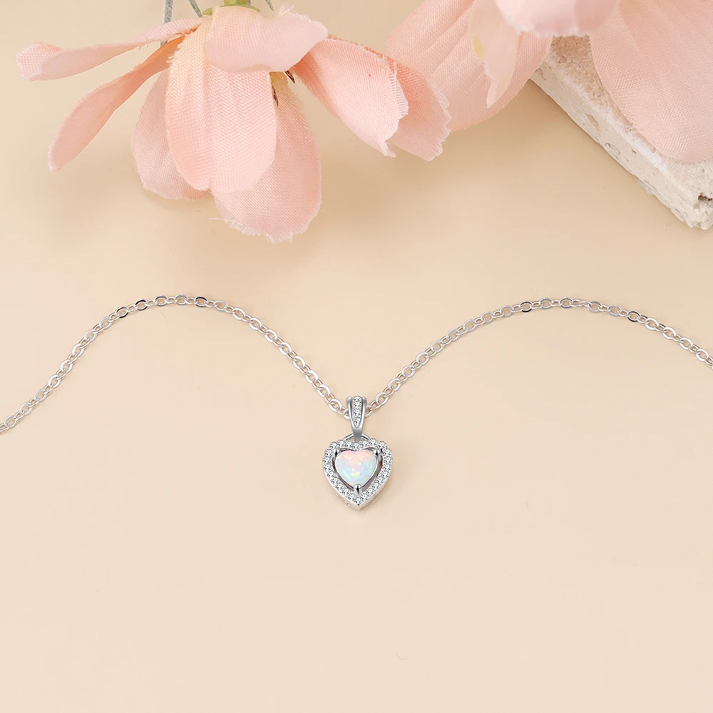 Ожерелья серебряного цвета в форме сердца, белого, розового, синего цвета, с опалом, ожерелья и кулоны с кубическим цирконием, модные украшения, подарок для женщин