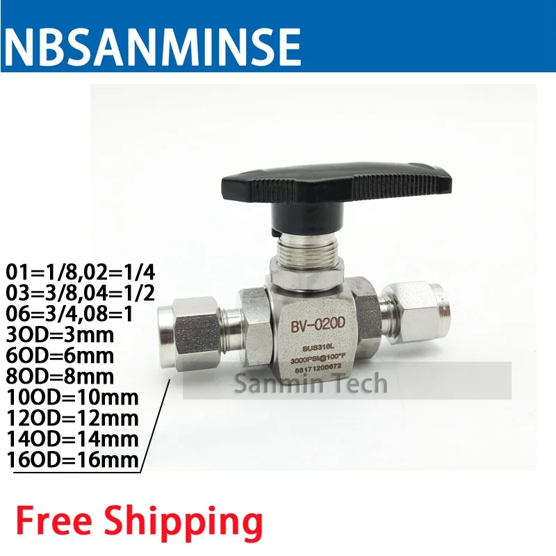 BV-OD F 18 14 38 12 34 шаровой клапан из нержавеющей стали 3000 Psi трубка 6000 Psi концевое соединениеЖенский NPT резьба NBSANMINSE