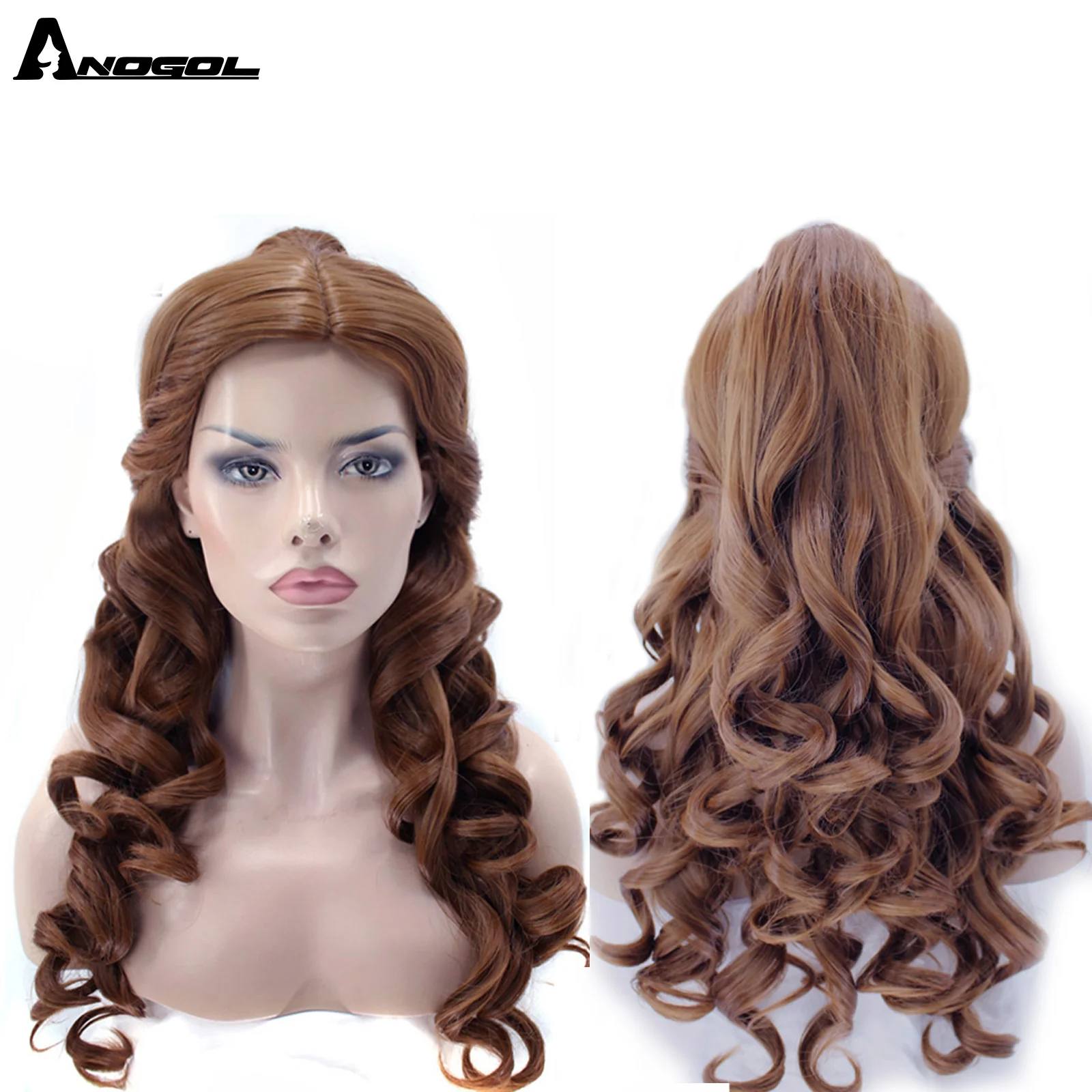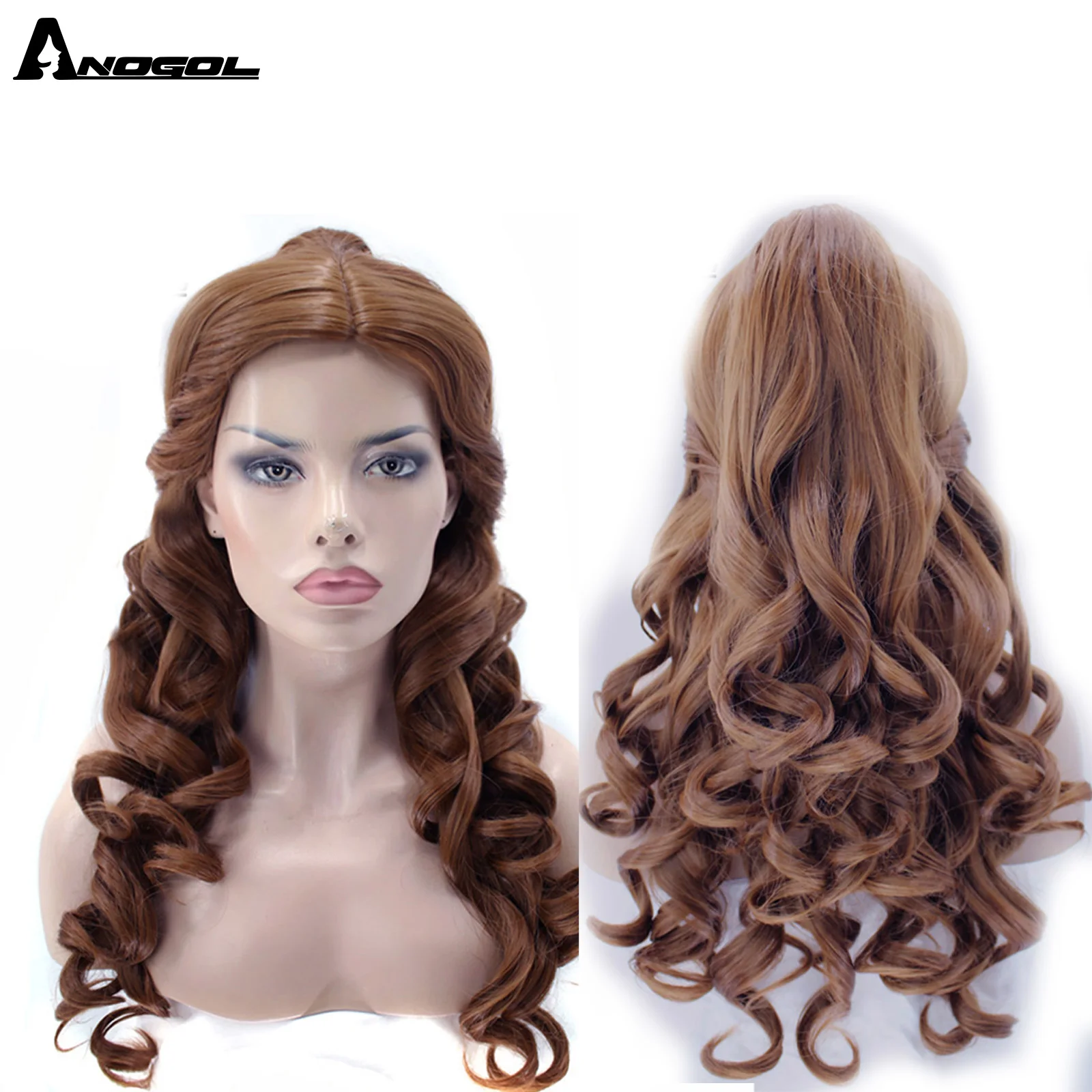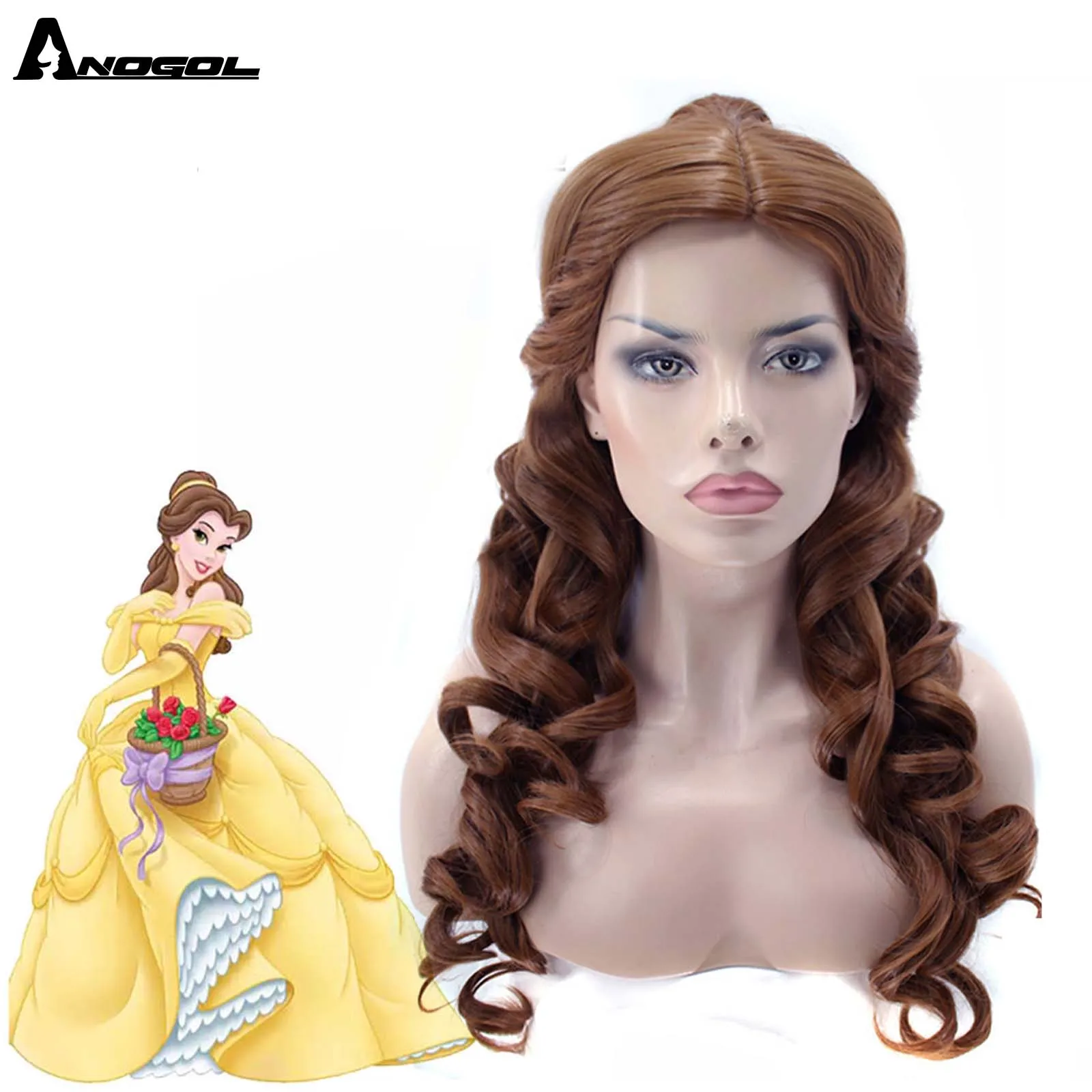 Парик для косплея Белль Красавица и Чудовище Anogol, для вечевечерние НКИ на Хэллоуин, натуральные длинные волнистые заколки для конского хвоста, коричневая принцесса