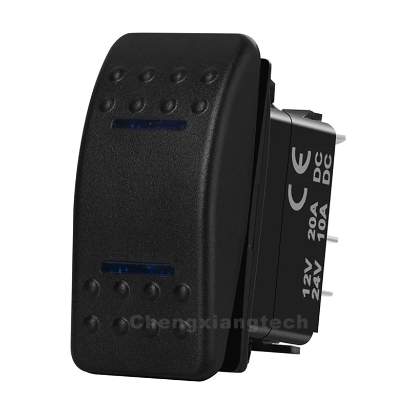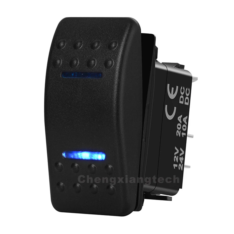 Кулисный переключатель DPDT, 7 контактов, синий светодиод, мгновенное включение и выключение, водонепроницаемый, 12 В, 24 В