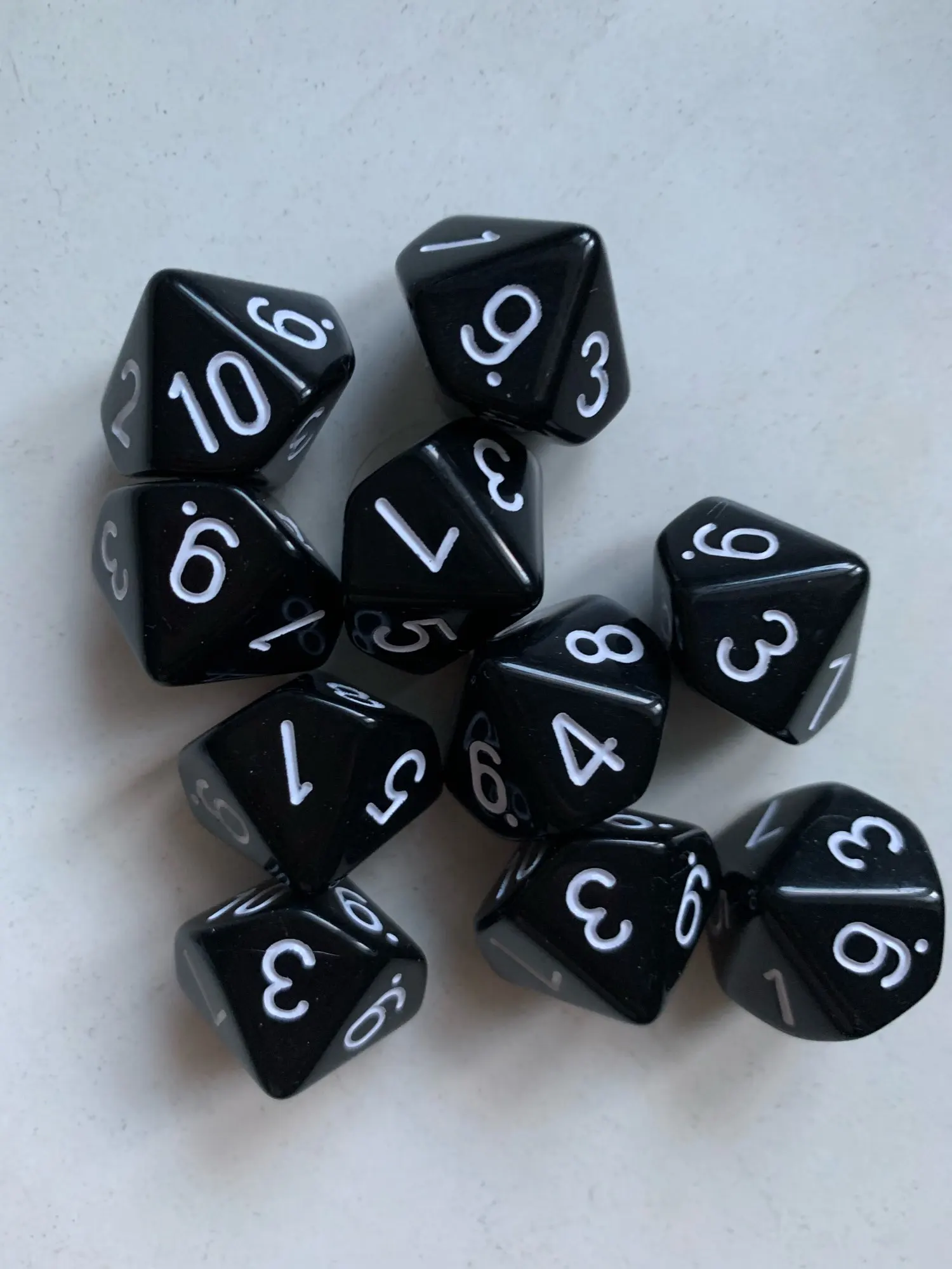10 шт., 10-сторонние кубики D10, многогранные кубики для игр D D, 16 мм, игральные кубики DND, RPG, MTG, семейвечерние, игровой домик для детей