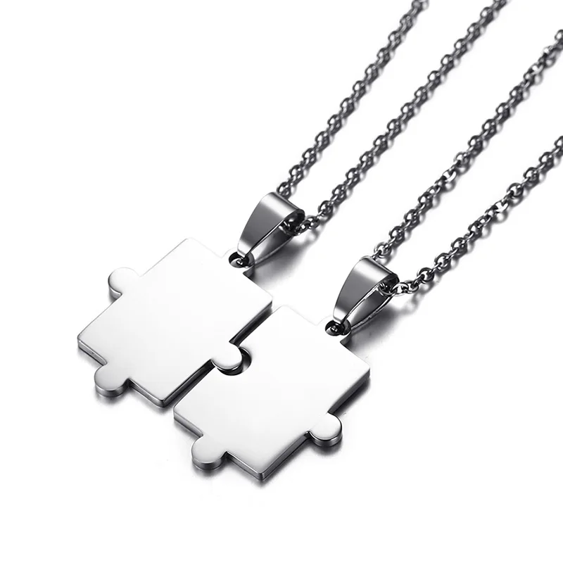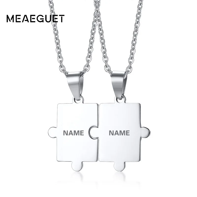 Meaeguet Бесплатная гравировка головоломки ожерелье набор для лучших друзей мужчин женщин пара нержавеющая сталь индивидуальное подвесное ожерелье набор