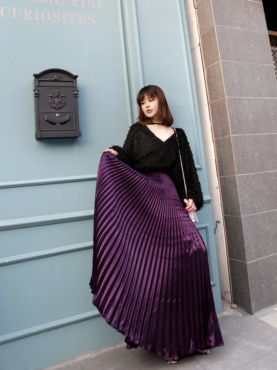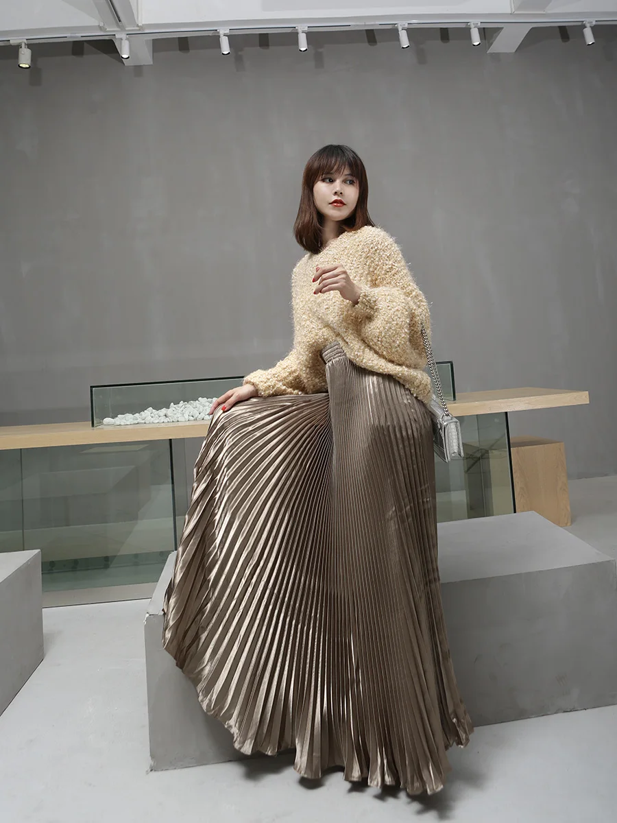 Женская винтажная длинная юбка-клеш, серебристо-золотистая однотонная пляжная плиссированная юбка макси с высокой талией, лето 2021