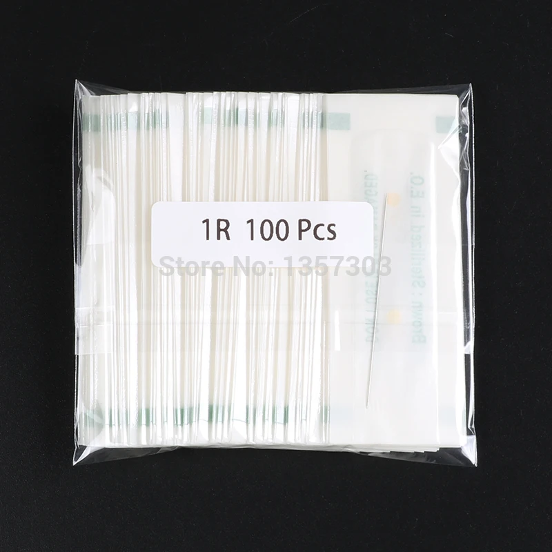 Одноразовые стерилизованные Профессиональные иглы для тату 1RL Для аппарат в виде ручки для татуажа бровей Перманентный набор для макияжа 100 шт. иглы PMU 1R