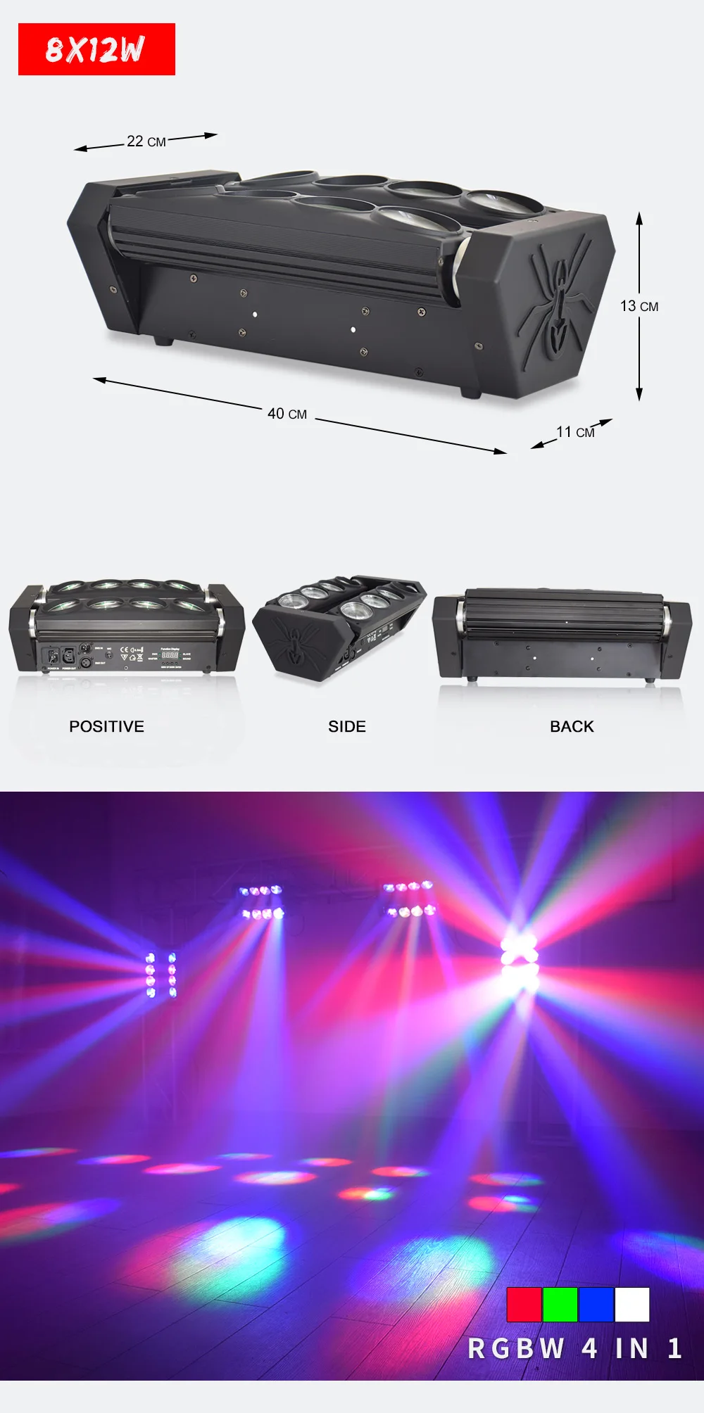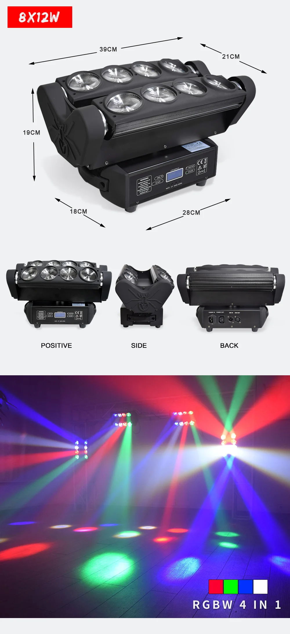 8x12W RGBW мини светодиодный светильник с движущейся головкой