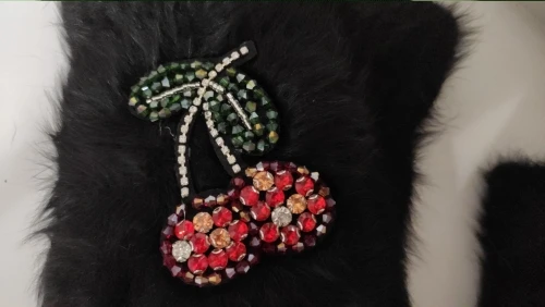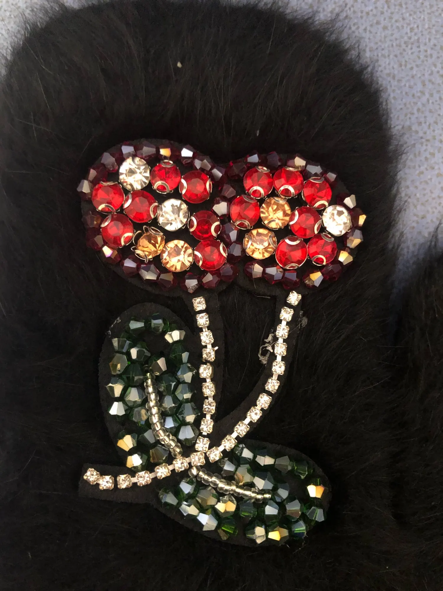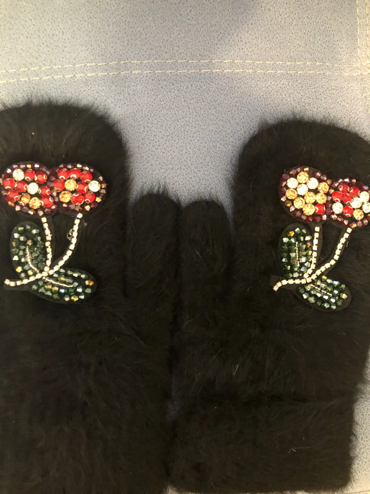 Перчатки женские зимние, с украшением из кроличьего меха, со стразами и вишенками, 2017
