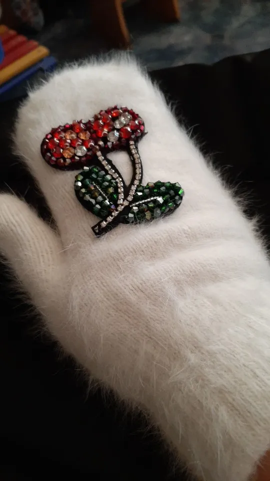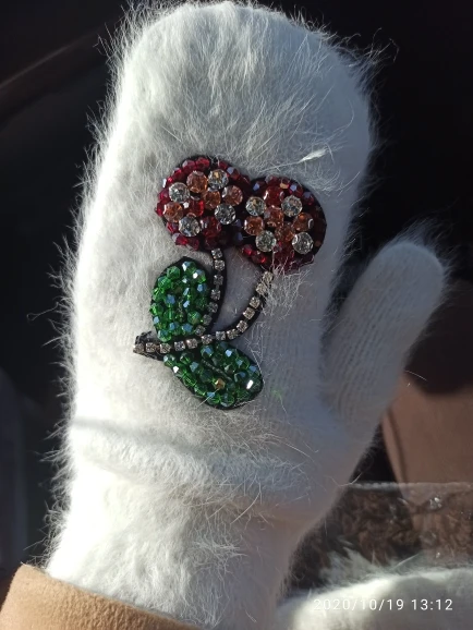Очень классные варежки! Мягкие, не колючие, тёплые, все стразы на месте. Я в восторге!