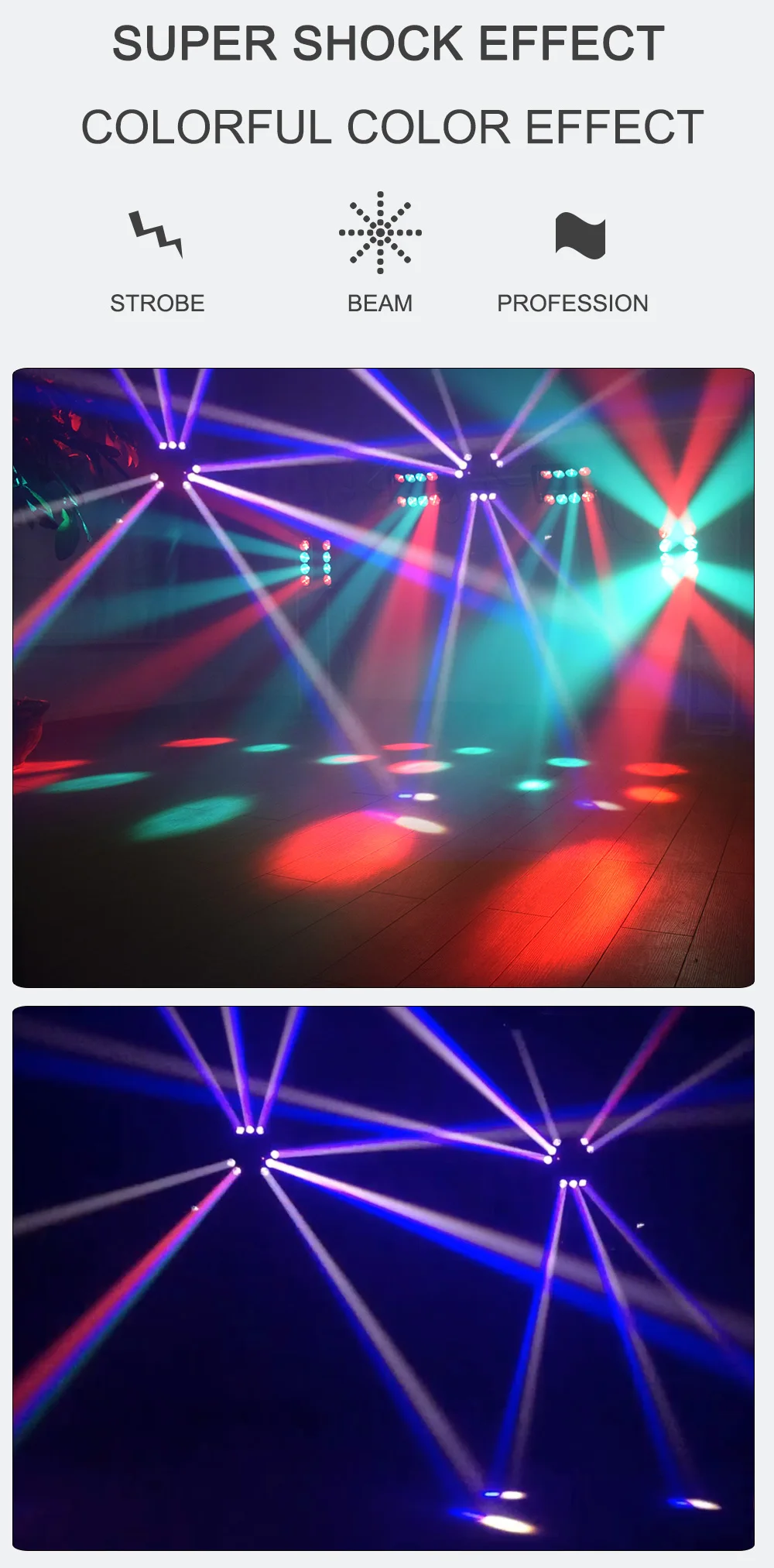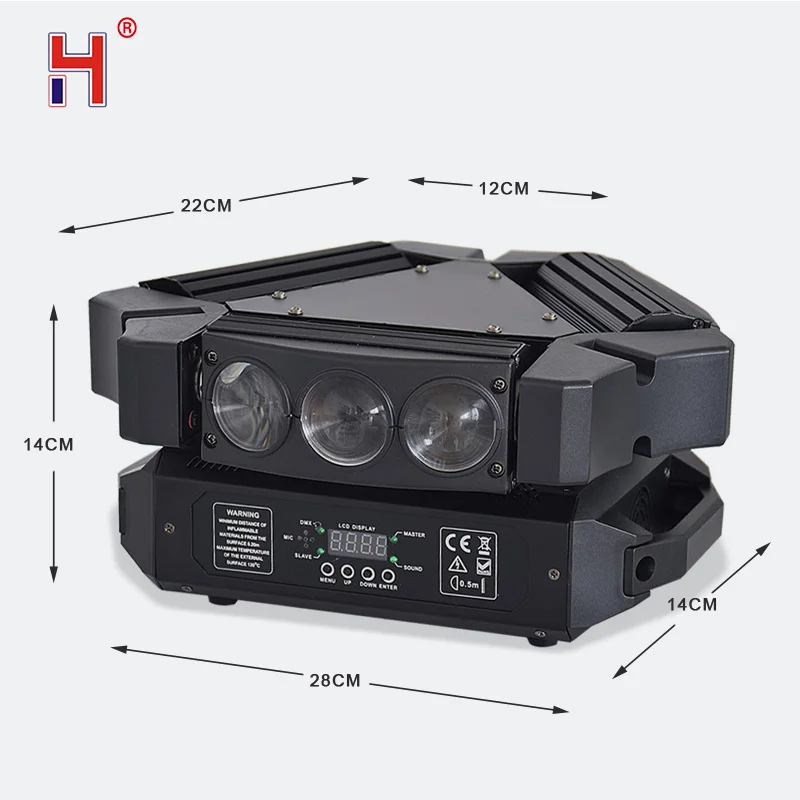 Характеристики:-Уникальный приспособление освещения с быстрым подметальная узкие балки в сочетании с 8-зона светодиодный chase-Светодиоды 8x6 Вт (2 x красный, 2 x зеленый, 2 x синий и 2 x Белый)-С 4 кнопками DMX светодиодный Дисплей-3 режима работы: режим показа, активный режим звука и управление DMX-DMX режимы канала: 7CH,15CH канал-Протокол DMX-512-Электронное Затемнение: 0 - 100%-Включает в себя захватывающие звуковые активированные встроенные программы-Светодиодный импульсный и стробоскопический эффект-Наклон 170 градусов от Гладкий Степпер моторов-Очень длительный срок службы (50000 hr. Номинальное число)-Угол луча: 4 градуса-Работает очень круто! -Нет циклов работы! -Бегать всю ночь!-Включает Монтажный кронштейн для крепления на стене или установки на земле-Петля безопасности на боковой панели-Очень низкое энергопотребление-Подключите больше единиц в одной цепи-IEC AC IN/OUT на задней-daisy цепи питания (до 15 приспособлений @ 120V и 28 приспособлений @ 230V)-Потребляемая мощность: максимум 55 Вт-Мульти-Рабочее напряжение: AC 100-240V 50/60Hz- IEC разъем-Размеры (ДхШхВ): 283x151x110 мм-Вес: 2,5 кг.