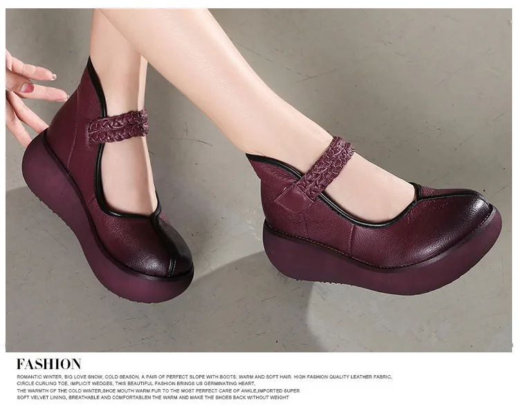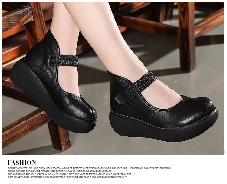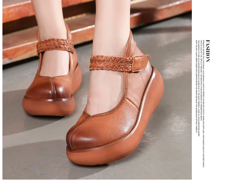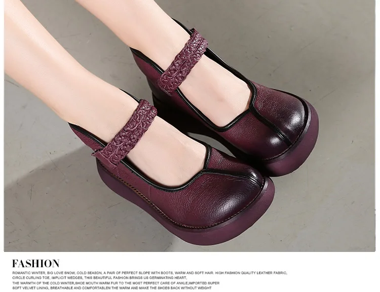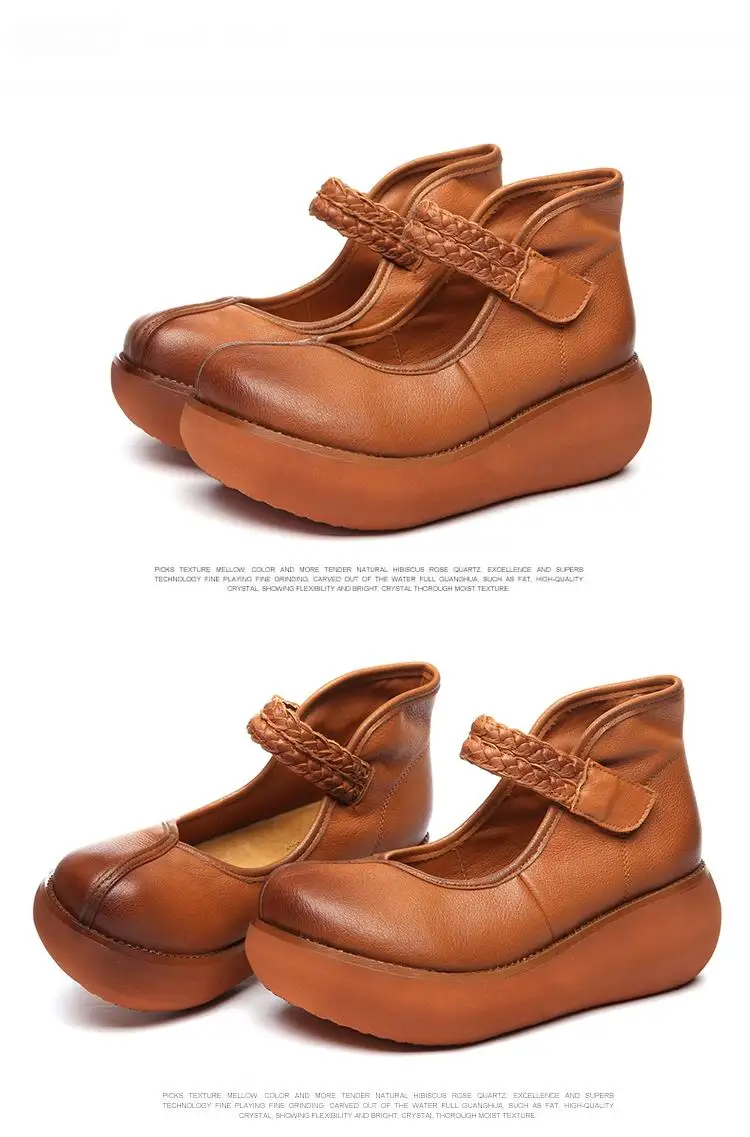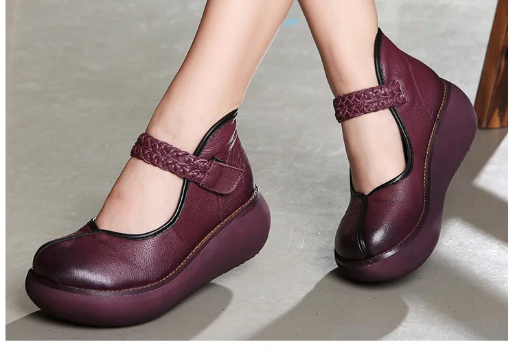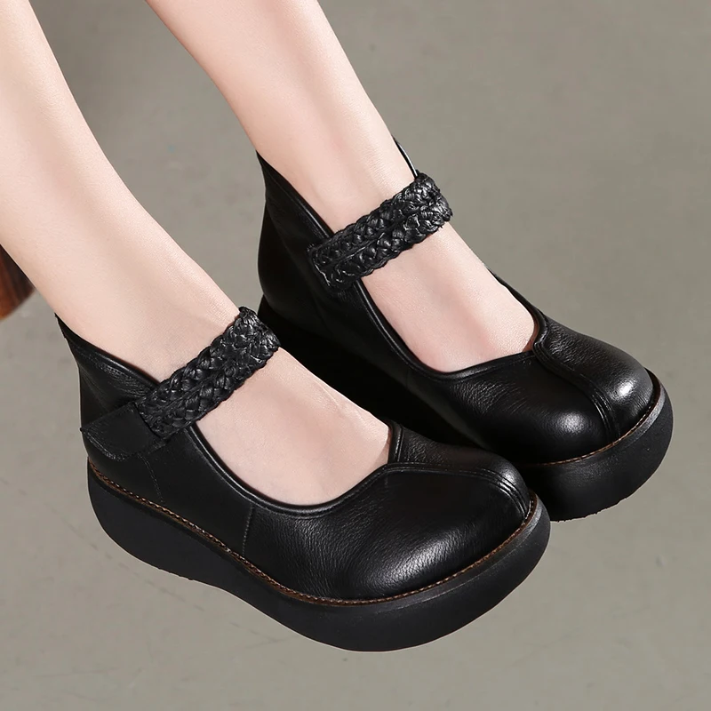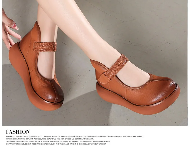 2022 весенняя обувь из натуральной кожи, женские туфли-лодочки; Модные женские туфли на платформе, туфли на танкетке с круглым пальцы, лодыжки на высоком каблуке с ремешком на щиколотке женская обувь