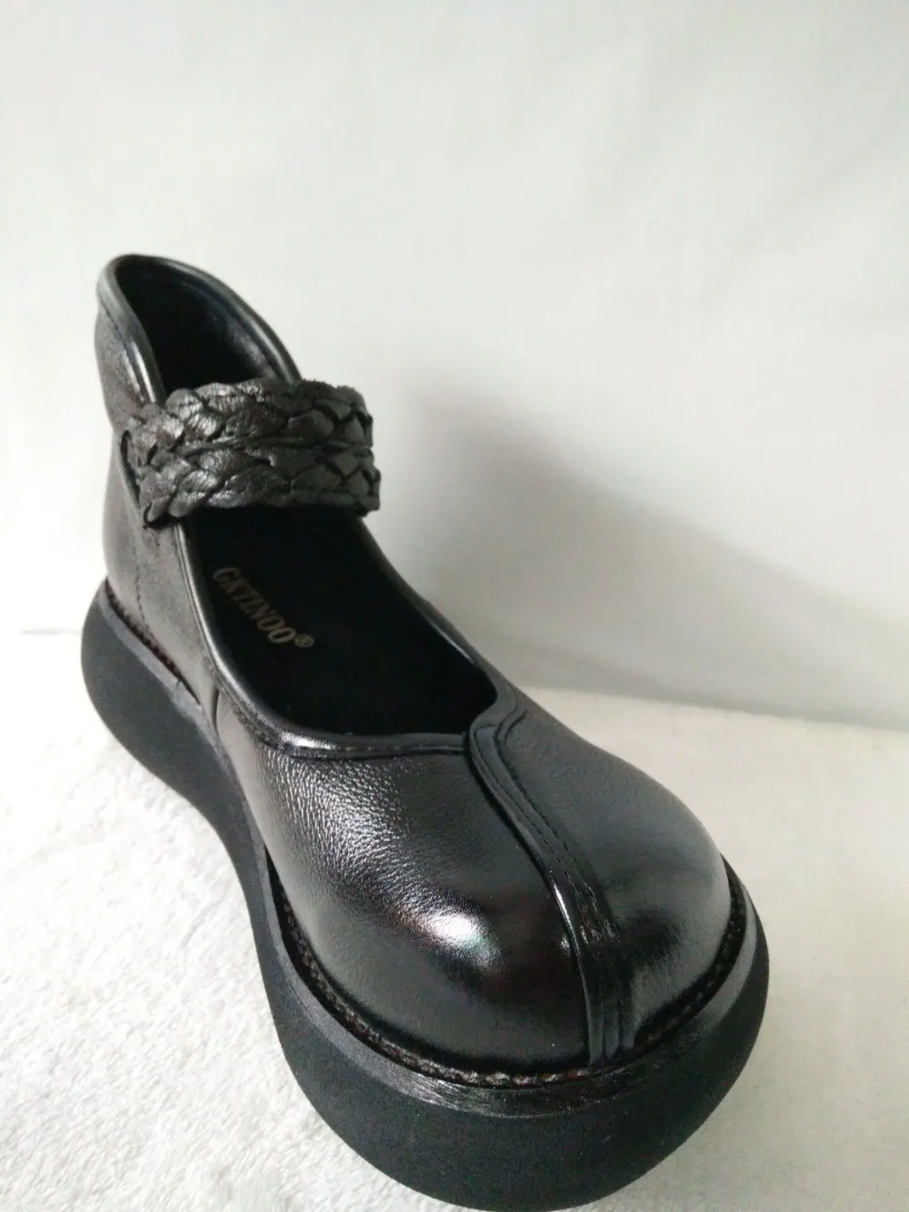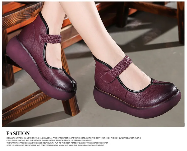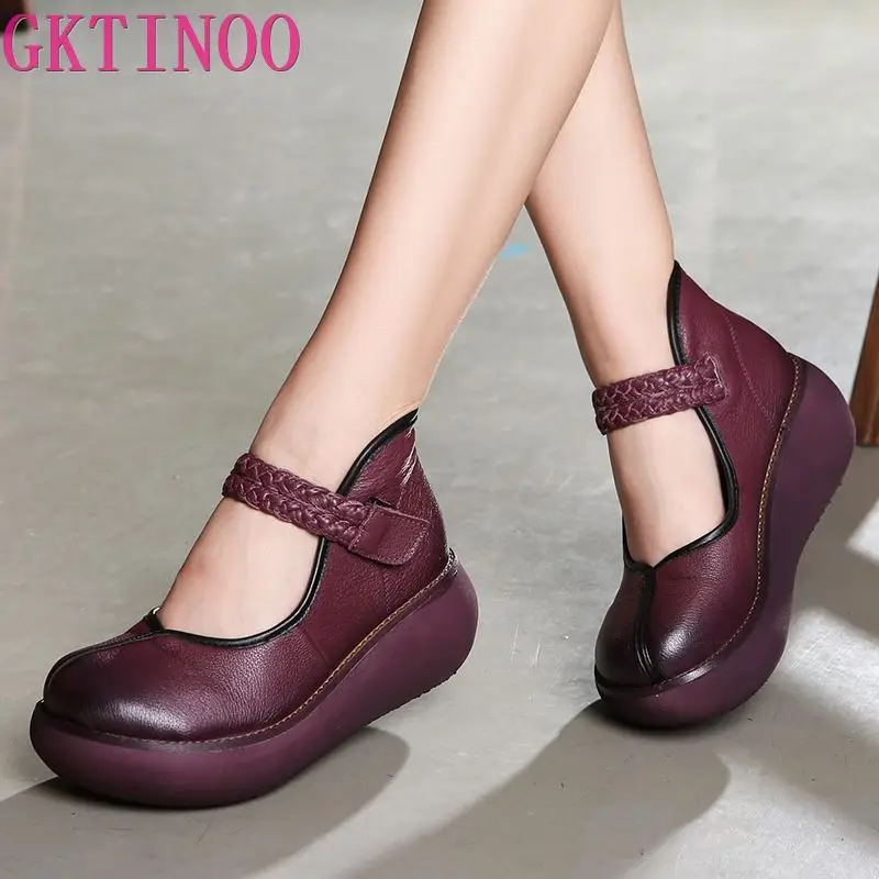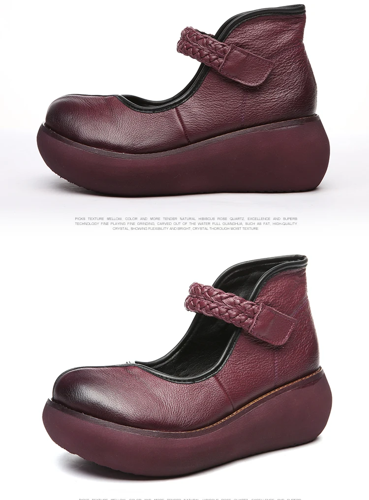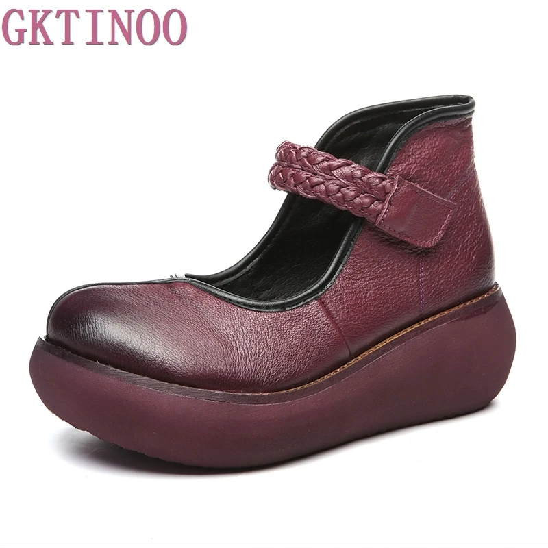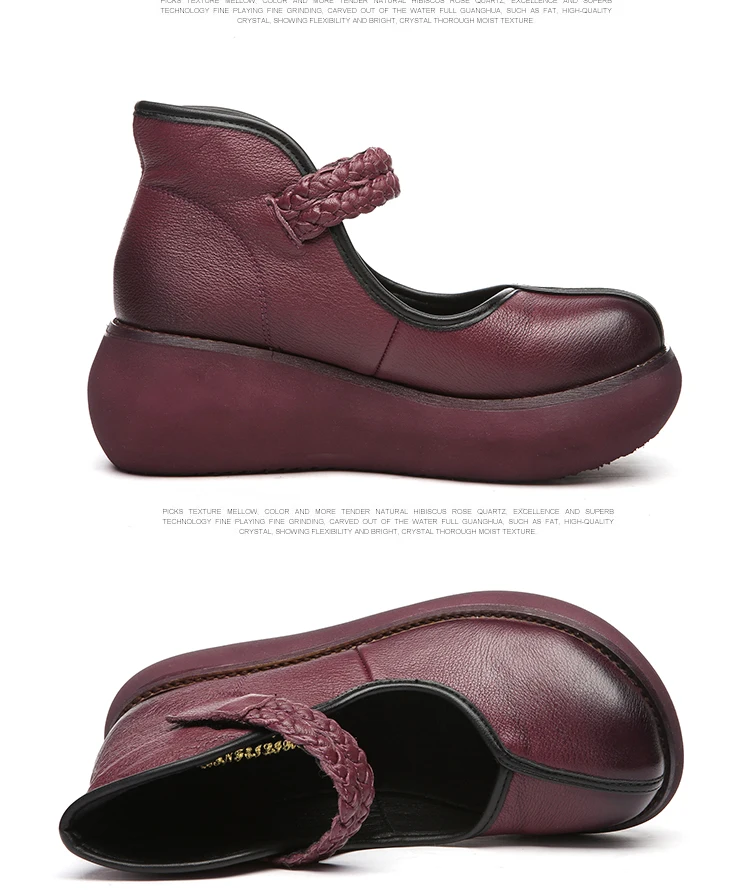 2022 весенняя обувь из натуральной кожи, женские туфли-лодочки; Модные женские туфли на платформе, туфли на танкетке с круглым пальцы, лодыжки на высоком каблуке с ремешком на щиколотке женская обувь