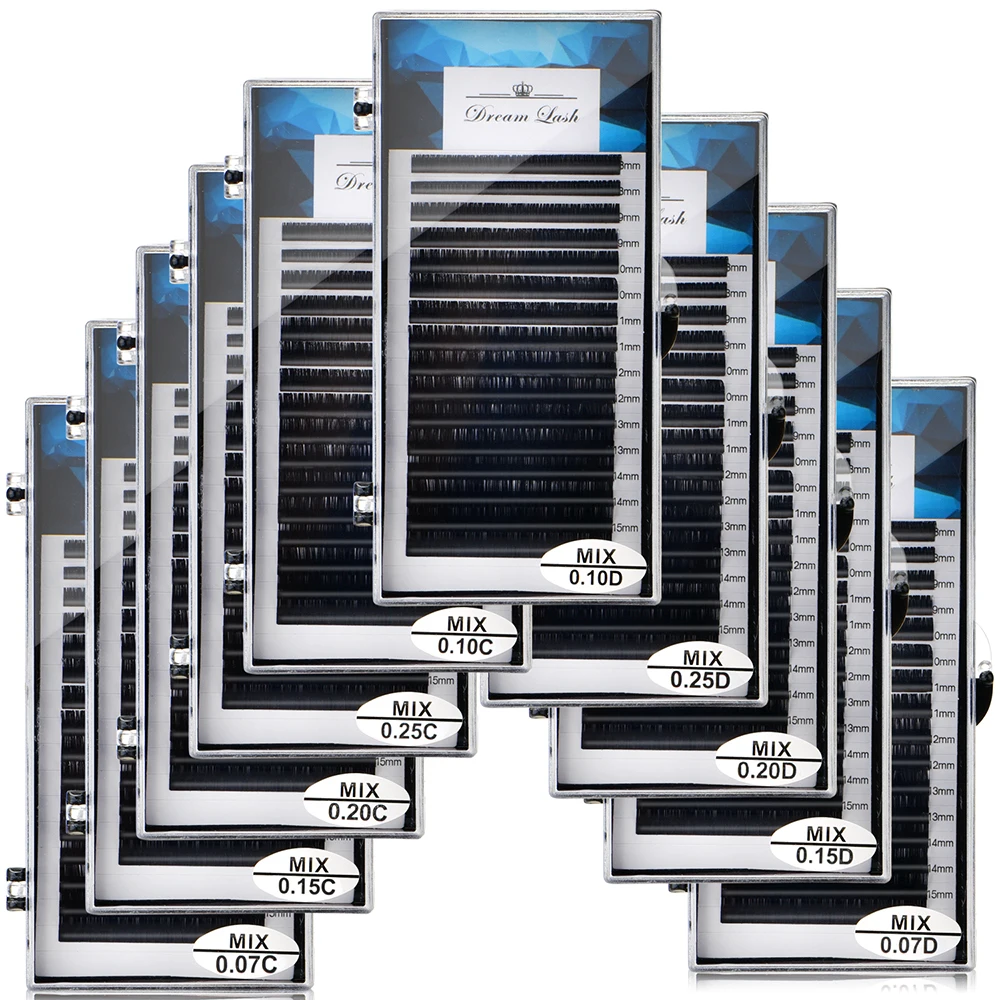 Диаметр прыгает в зависимости от длины ресниц. Иногда в одной коробке все норм, а иногда очень тонкие, в миксах длинна 12-15 как 0,12