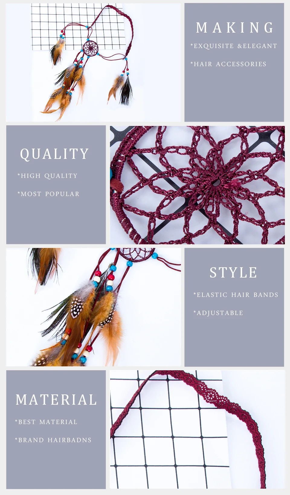 Головной убор Haimeikang в богемном стиле, повязка на голову в стиле хиппи, Ловец снов, перья, модное перо павлина, аксессуары для волос