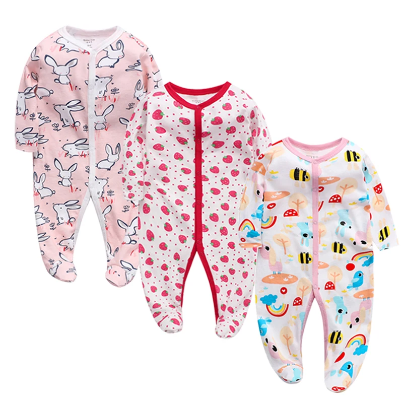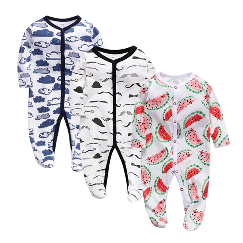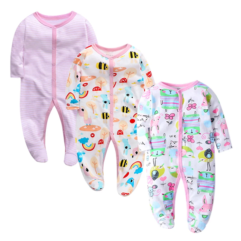 3 шт.Лот Детские комбинезоны для новорожденных девочек и мальчиков одежда из 100% хлопка с длинными рукавами Детские пижамы Детские комплекты с мультяшным принтом
