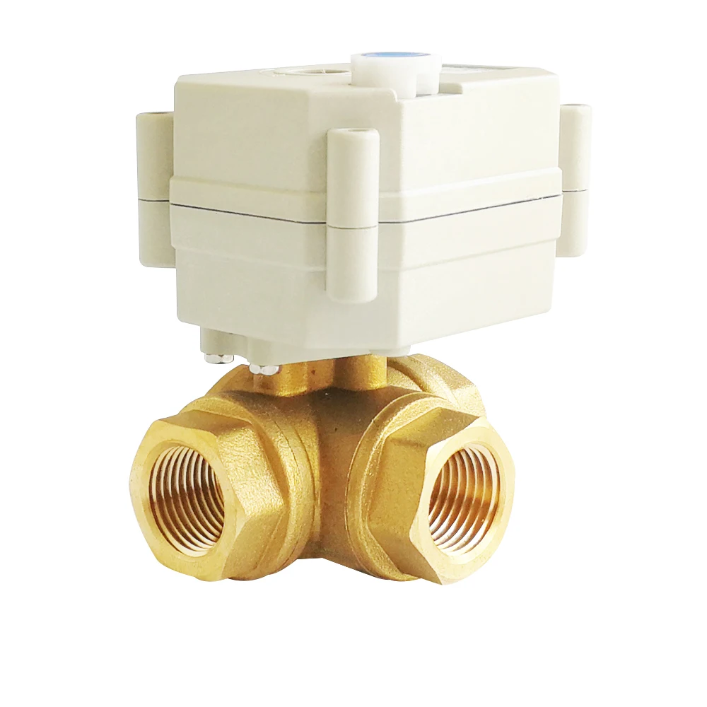 Электрический клапан 12 В, 24 В, 5 в постоянного тока, 12 В, 24 В постоянного тока, 2357 провода, 3-ходовой латунный DN15, 12 дюйма, горизонтальный L-порт, Т-образный порт, водный моторизованный клапан