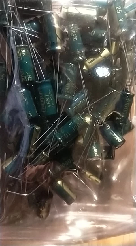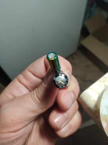Обычно заказывал черные, вроде всегда устраивали, брак был крайне редко. Но те, что пришли, удивили своими размерами. Раза в 1,5 меньше. При том же напряжении и емкости. Подумал, что явно фуфло, напряжение завысили, т.к. такого же размера у меня были 1000/16. Решил померить, провести тест. Вообщем и у старых и этих зеленых, новых ESR одинаковый - 0.09 Емкость у старых (черных) - 850 мкф, у зеленых 760 мкф. Далее пошел краш тест. Подключил их в параллель и подал напряжение с лбп. 24 в держали достойно оба участника. Кода поднял до 27, черный начал греться и испустил дух. Был этим удивлен. Остался один участник, продолжил мучать его. И он меня откровенно удивил. Выкурил напряжение до макс на бп - 31в и только спустя около 3 мин, начал потихоньку рости ток, ну и в конце кондерчик психанул жёстко! Выводы следующие. Кондер, хоть мал, да удал! Напряжение держит честное и с небольшим запасом!